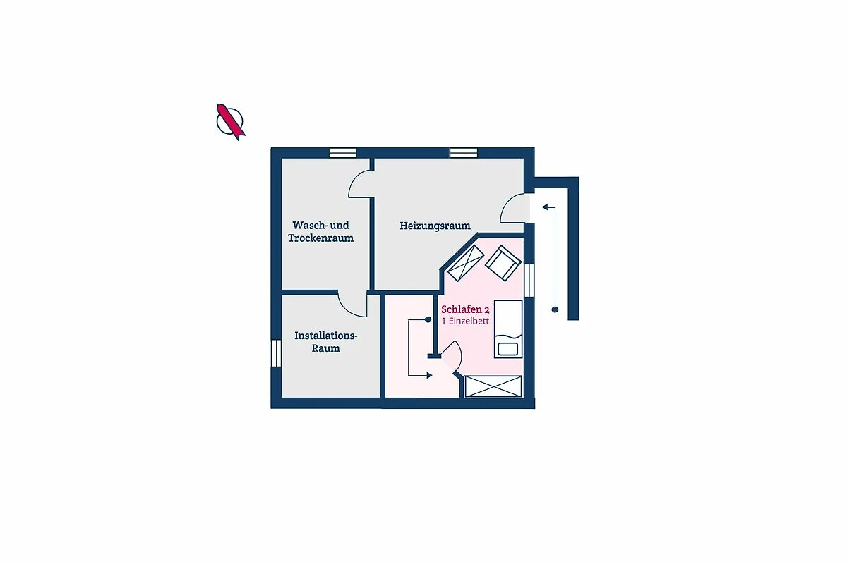 Im gemeinschaftlichen Hauswirtschaftsraum im Souterrain stehen Ihnen Waschmaschine und Trockner zur Verfügung. Diese können gegen eine Gebühr in Höhe von 2,50 EUR je Wasch-/Trockengang genutzt werden. Bitte wenden Sie sich Bedarf an unser Team. Ein kostenfreier PKW-Stellplatz am gegenüberliegenden Architektenbüro rundet das Angebot ab.