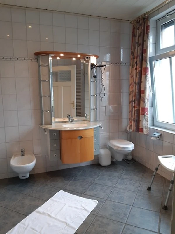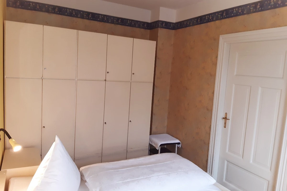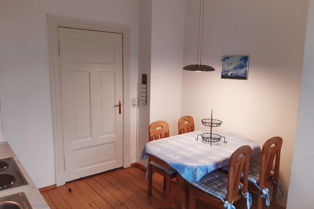 Die Wohnung teilt sich auf in ein Schlafzimmer mit einem Doppelbett, einem zweiten Schlafzimmer mit 2 Einzelbetten, einem Wohnzimmer mit SAT-TV, einem grossen Bad mit Dusche und Badewanne sowie einer gut ausgestatteten Küche mit Essbereich. Besonderen Charme der alten Stadtvilla strahlen die alten Holzbodendielen aus.