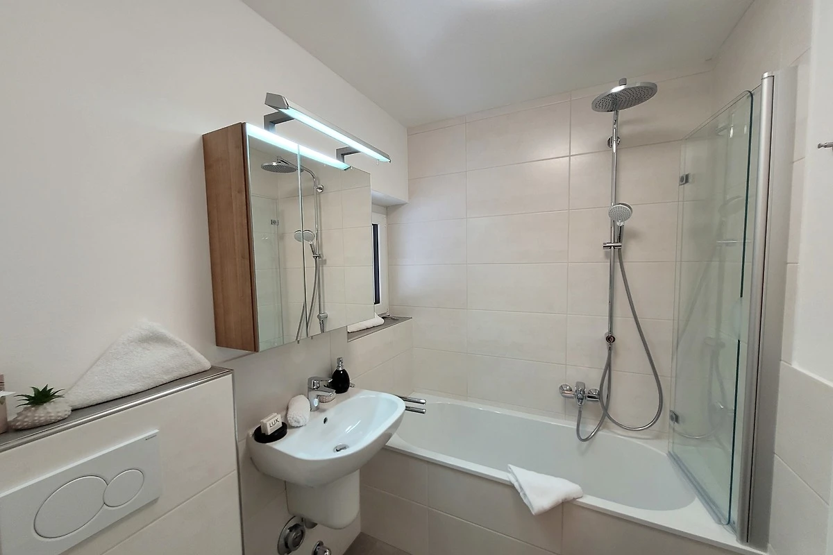 Die Ferienwohnung überzeugt durch eine komplett ausgestattete Küche inklusive Spülmaschine und einem neuen Bad mit Badewanne. Ausserdem wird ein Satz Handtücher und Bettwäsche zur Verfügung gestellt.