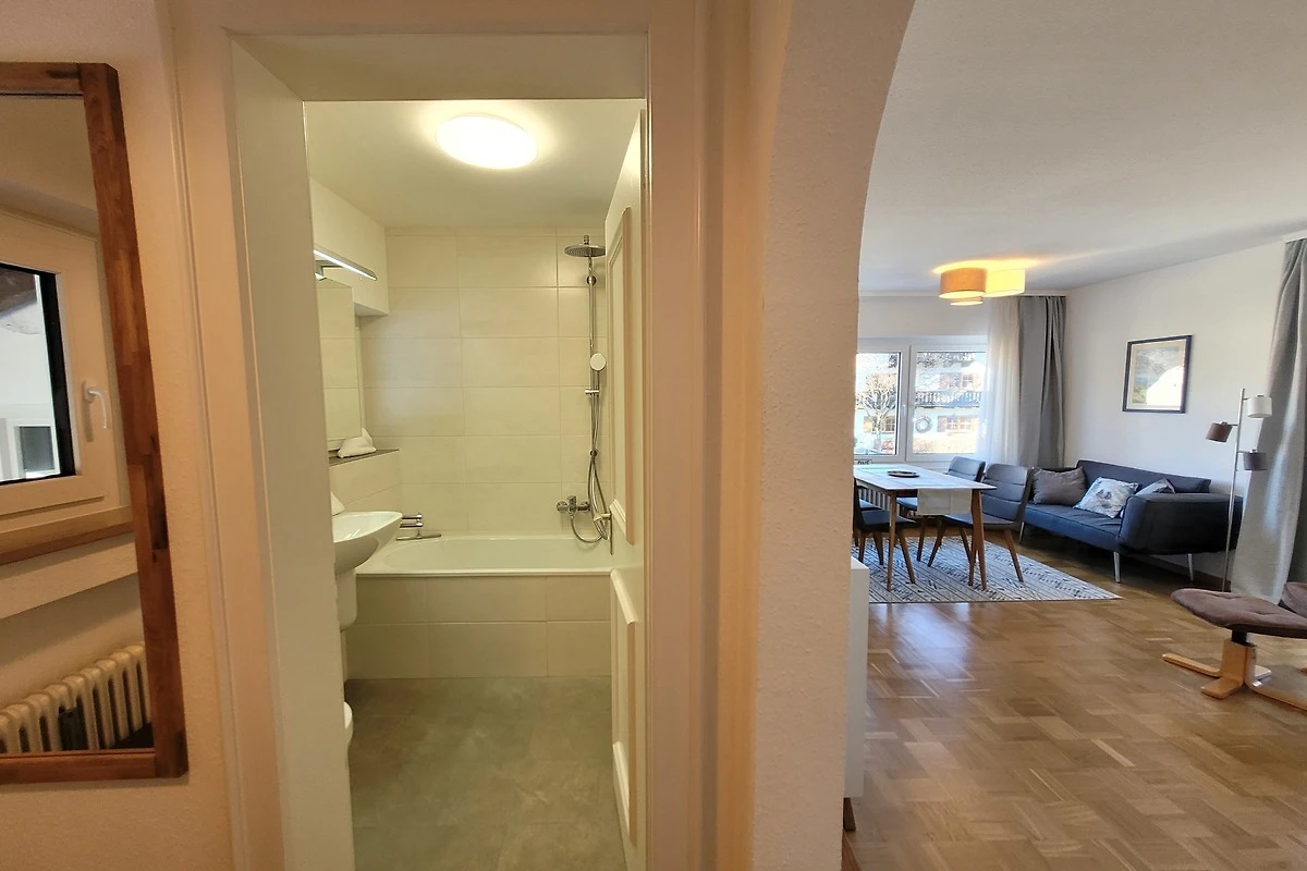 Die gemütliche und moderne Ferienwohnung befindet sich im 1. Obergeschoss. Von dort geniessen Sie einen wunderschönen Blick auf den Wank.