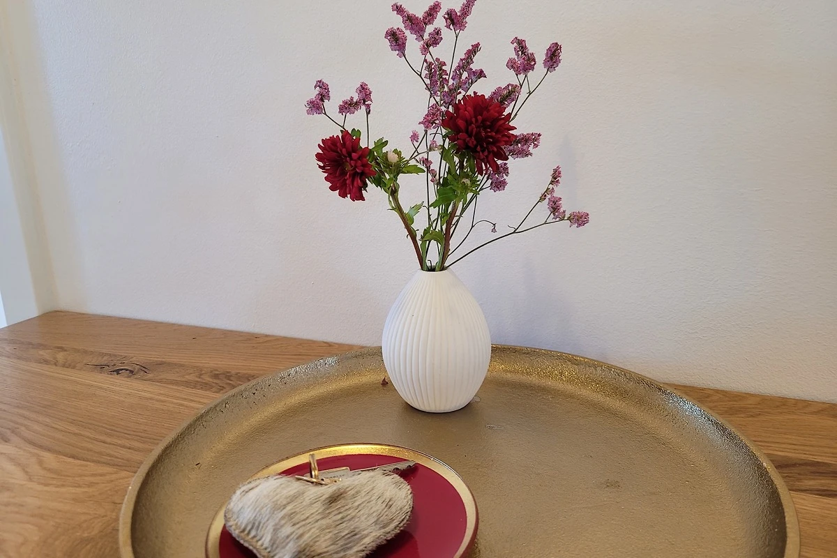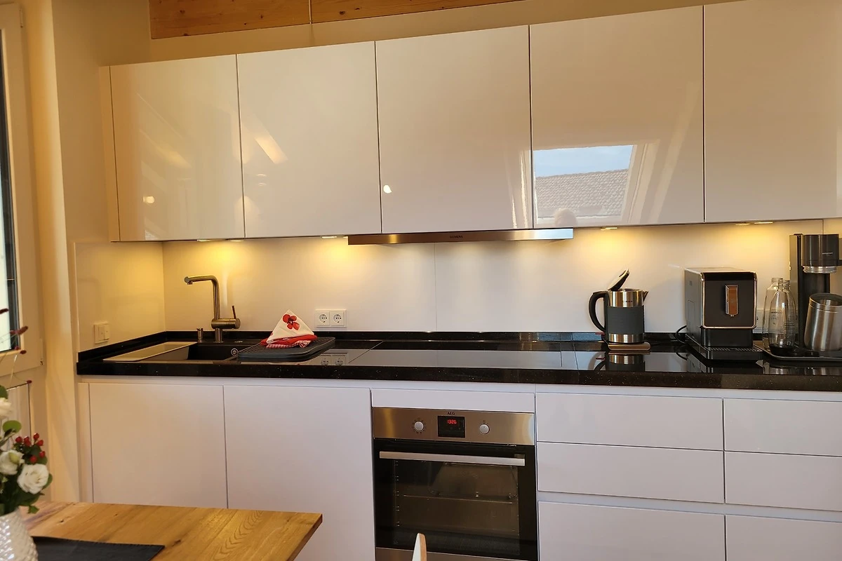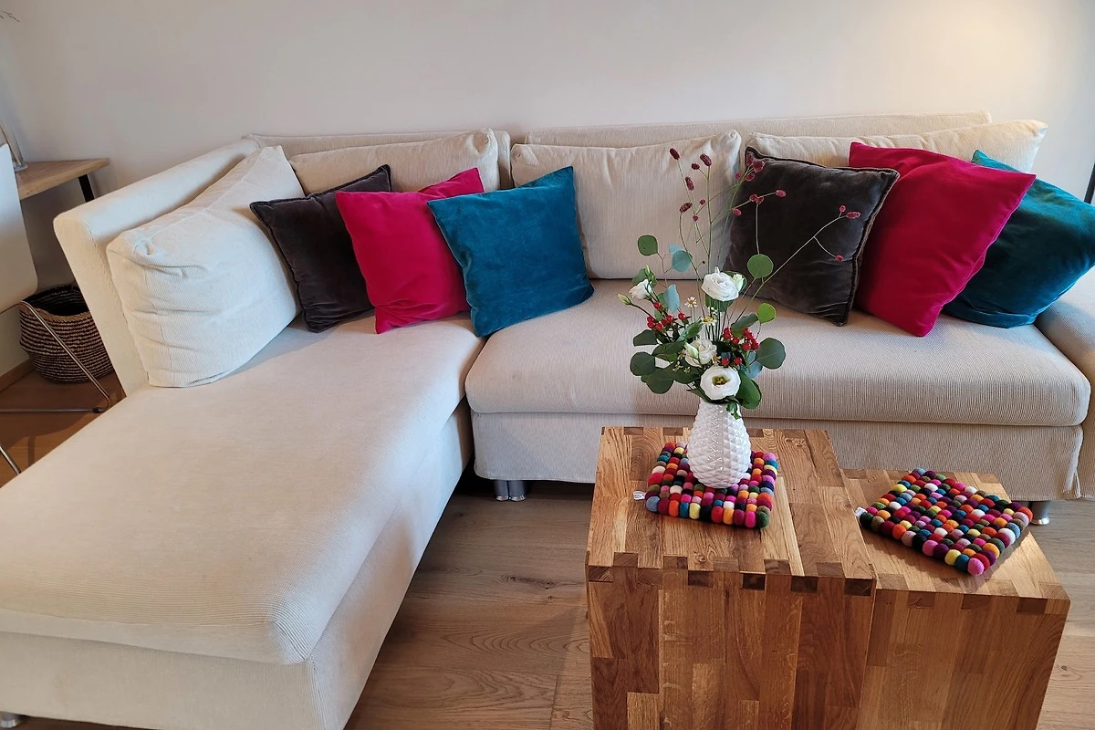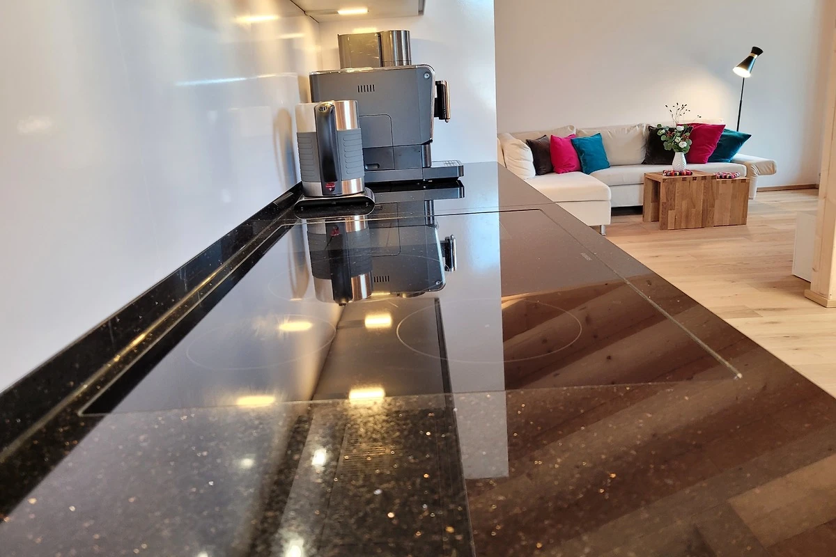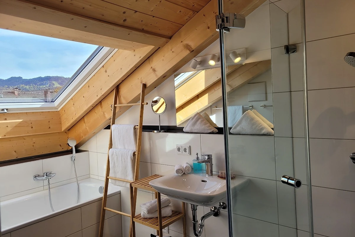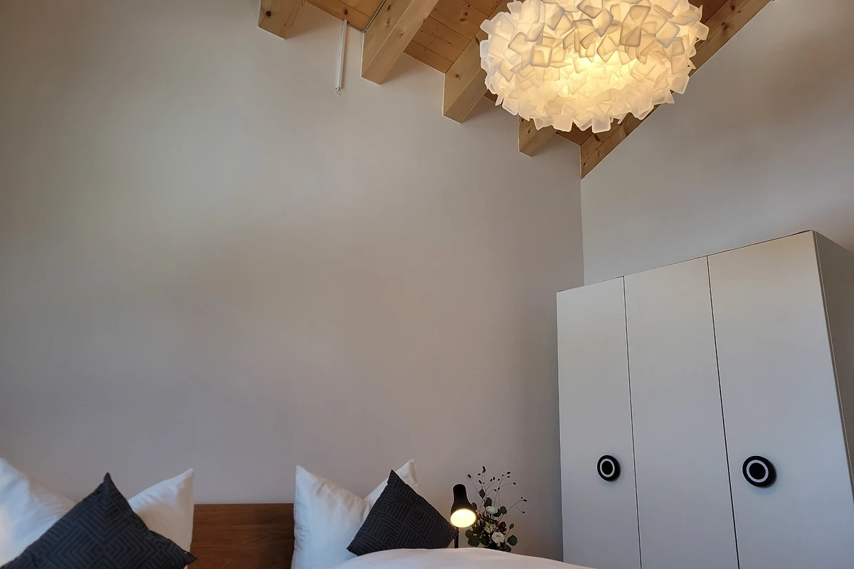 Die qualitativ sehr hochwertig ausgestattete Ferienwohnung bietet angenehmsten Komfort für bis zu 4 Personen. Der hohe offene Dachstuhl, die Dachfenster, die nachhaltigen Eichen Massivholzmöbel und das Eiche-Naturholzparkett mit Fussbodenheizung garantieren eine Wohlfühlgemütlichkeit und strahlen eine alpenländische Atmosphäre aus.