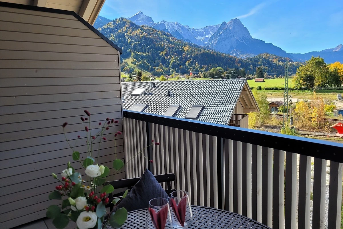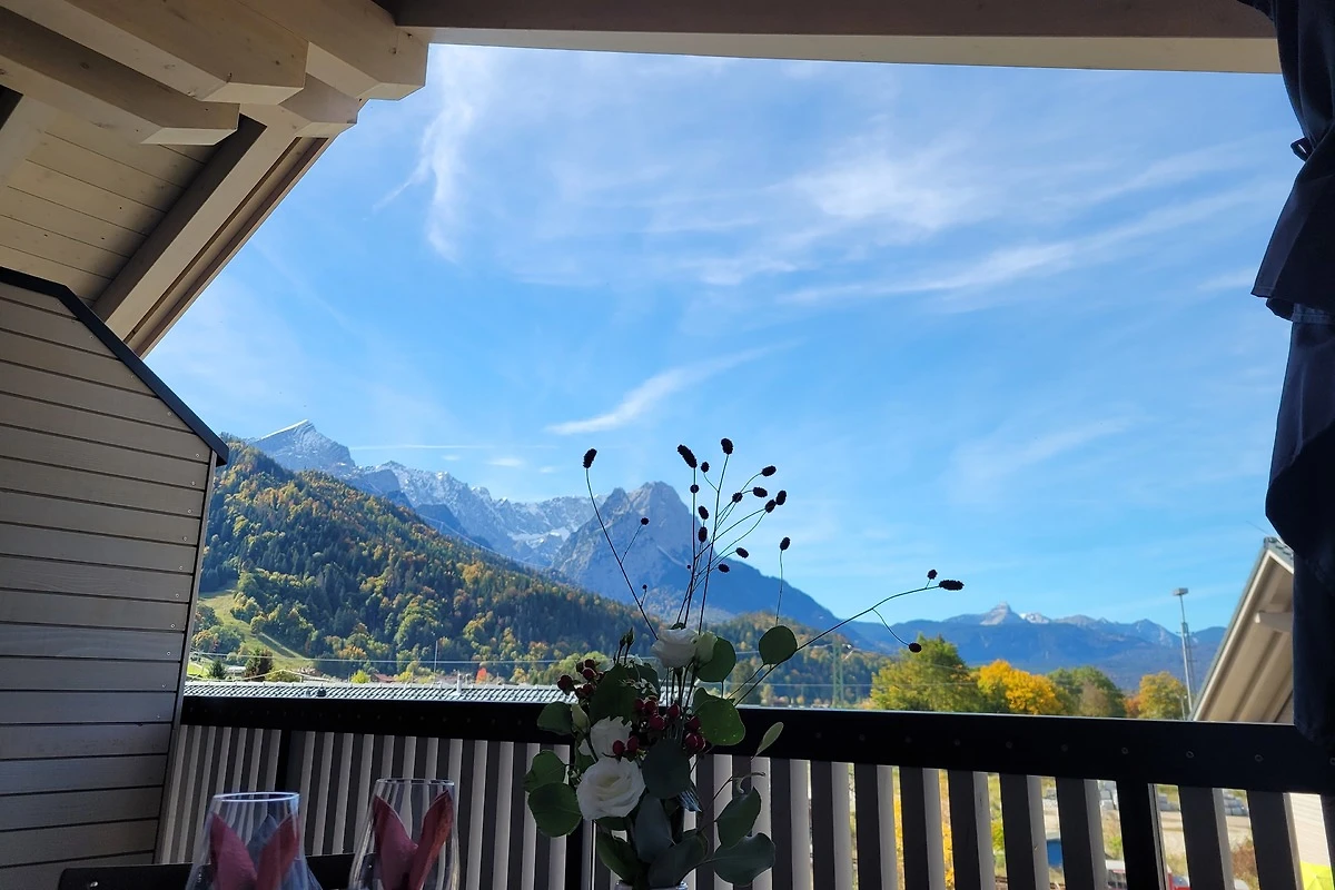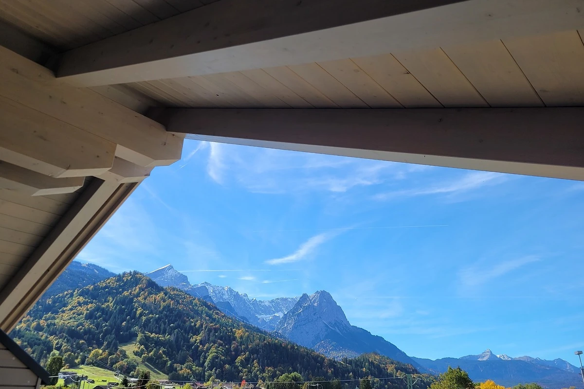 Die 2022 fertiggestellte Dachgeschosswohnung überzeugt durch eine durchdachte Raumaufteilung in 3 Zimmer und zusätzlich einer Loggia in Westausrichtung. Diese eröffnet einen herrlichen Blick auf auf das Wettersteinmassiv mit Alpspitze und Zugspitze.