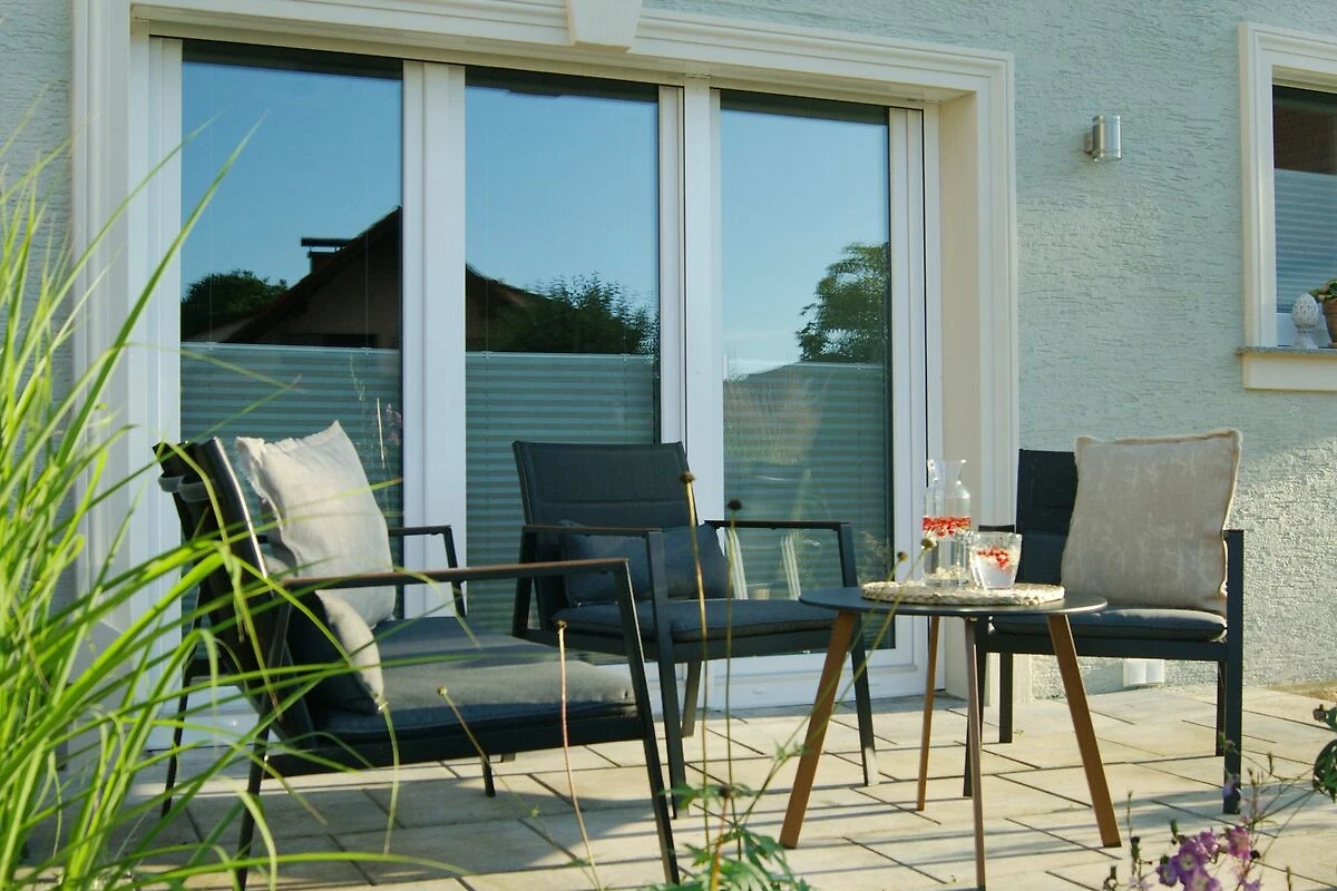 Unsere Ferienwohnung liegt im Erdgeschoss eines Zweifamilienhauses, welches komplett saniert und neu ausgestattet wurde.