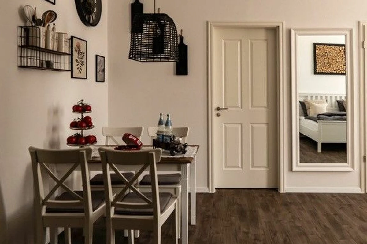 Die Ferienwohnung, barrierefrei, in ländlich geprägter, idyllischer Stadtrand-Lage der Lutherstadt Wittenberg befindet sich im Ortsteil Apollensdorf innerhalb eines ehrwürdigen Denkmalobjekts, umgeben von privater Parkanlage, ist romantisch und modern eingerichtet, befindet sich in einem liebevoll sanierten Mehrgenerationen- Wohnobjekt, am westlichen Stadtrand der Lutherstadt Wittenberg, ca. 6,5 km vom historischen Stadtzentrum entfernt.