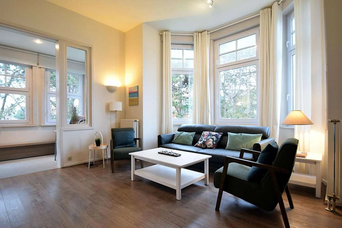 Geräumige, exklusiv eingerichtete Wohnung in einer historisch restaurierten Villa. Sonnige private Frühstücksterrasse. Geräumiges Apartment mit 2 Schlafzimmern, ausgestattet für max. 3 Erwachsene + 2 Kinder (Etagenbett), neue Küche mit hochwertigen Materialien ausgestattet. Geschmackvoll eingerichtet. Geräumiges Badezimmer. Teils Parkett, teils Fliesenboden.Nur 100m vom Strand entfernt. Parkplatz im Freien. Top Lage Digital TV, Internet und Bose Bluetooth.
