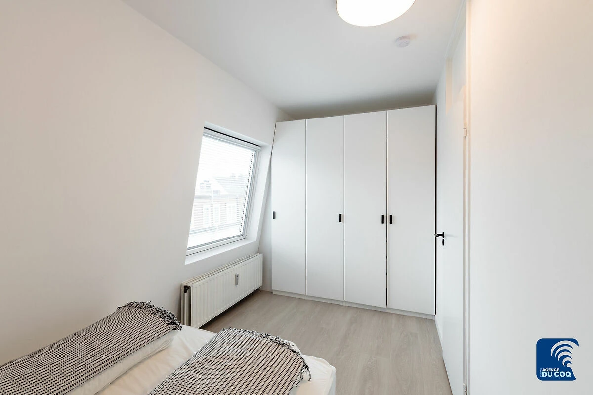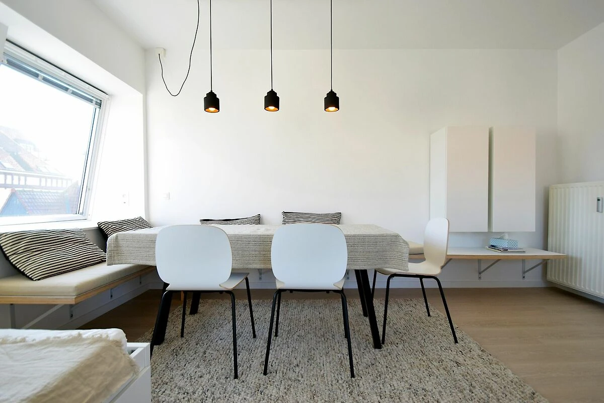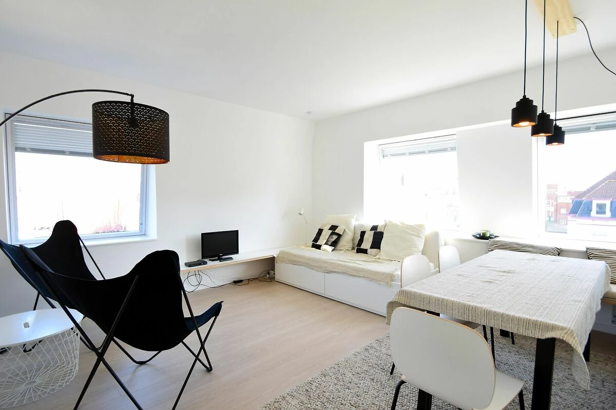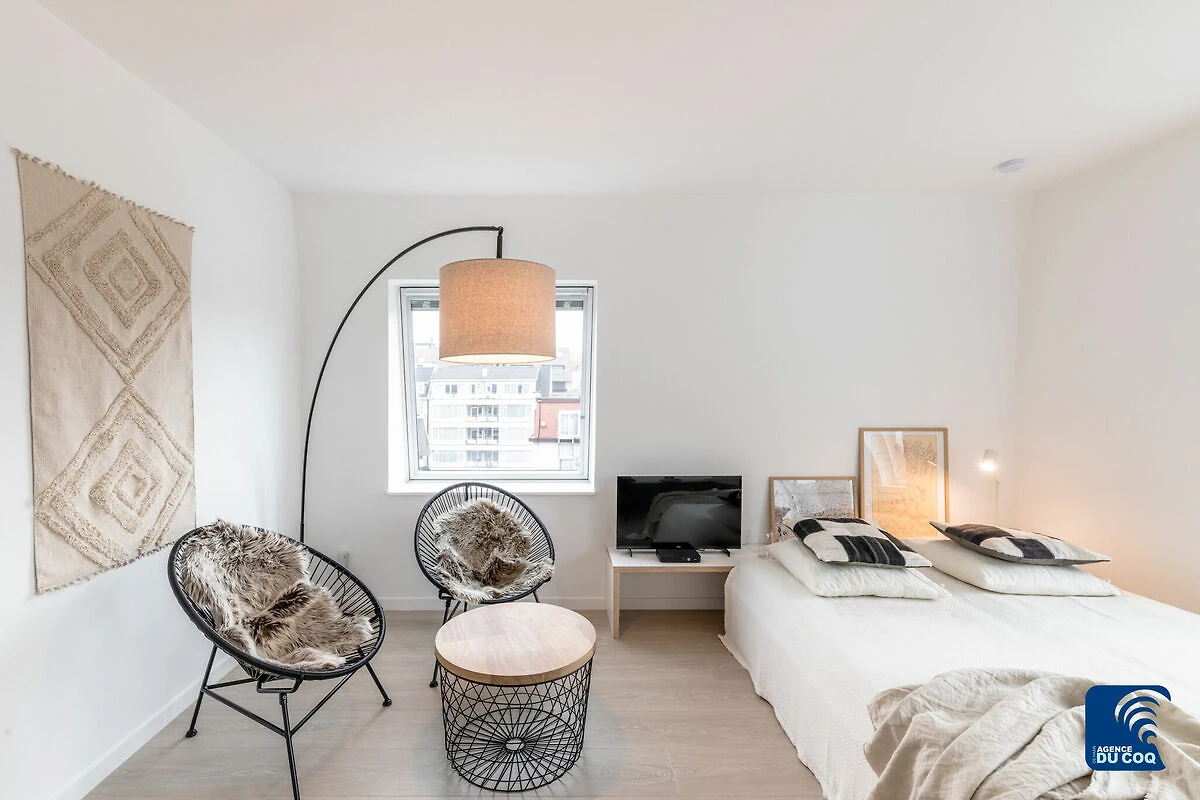 Betreten Sie dieses frisch eingerichtete Apartment nur 150 Meter vom Sandstrand von De Haan entfernt. Das durchdachte Design mit klaren Linien und gemütlichen Akzenten ist perfekt für Paare oder kleine Familien, die einen Urlaub am Meer verbringen möchten. Das Apartment bietet ein gemütliches Wohnzimmer mit Doppelschlafcouch, eine kompakte, aber stilvolle Küche mit allen wichtigen Geräten, darunter Geschirrspüler und Küchenmaschine, sowie einen hellen Essbereich für gemütliche Mahlzeiten nach einem Strandtag.