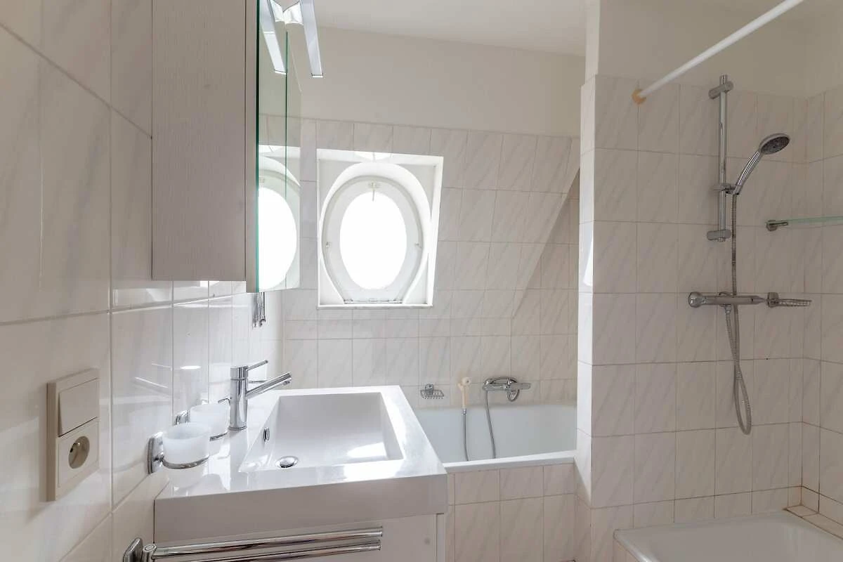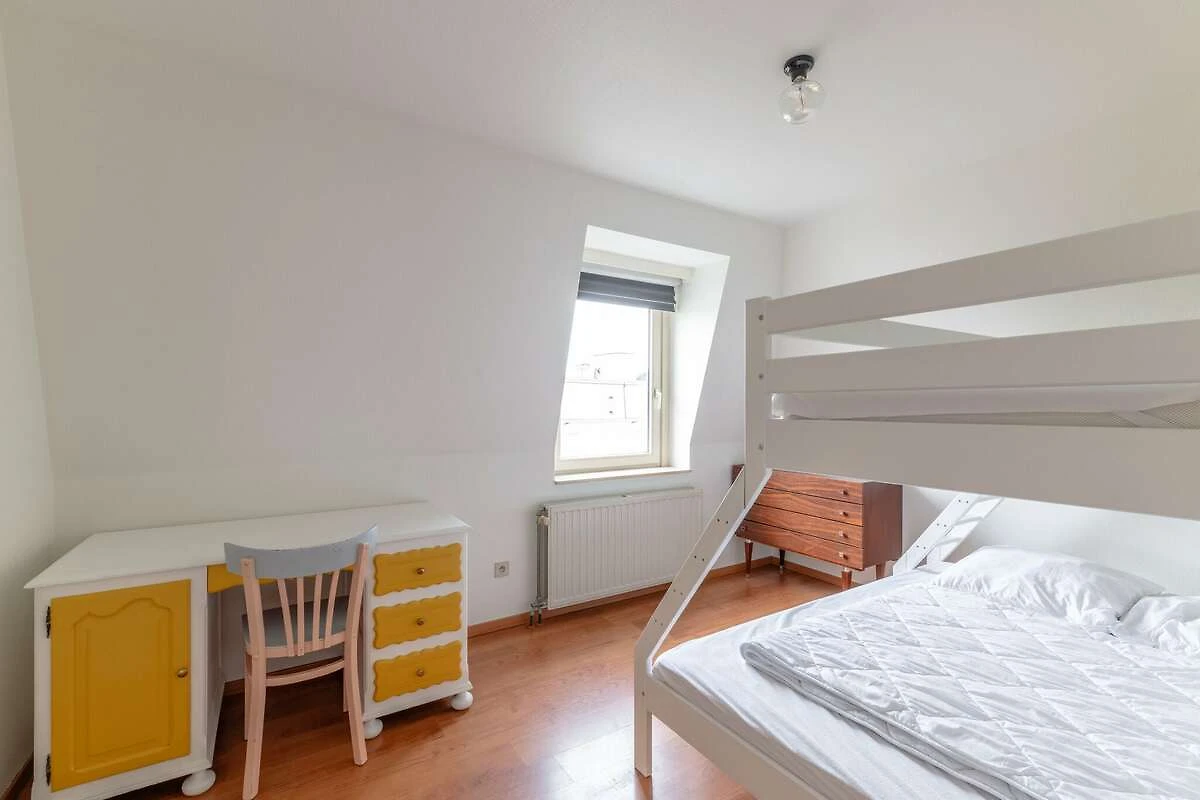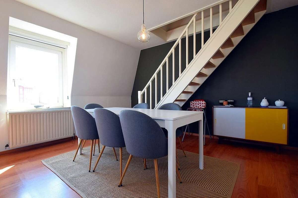 Die Wohnung befindet sich im 3. Stock mit Aufzug und verfügt über ein helles Wohnzimmer, eine voll ausgestattete separate Küche und ein modernes Badezimmer mit Badewanne und Dusche. Zwei komfortable Schlafzimmer im Erdgeschoss und ein zusätzliches Schlafzimmer im Dachgeschoss (über eine Treppe im Wohnbereich erreichbar) bieten flexible Schlafmöglichkeiten. Extras wie WLAN, Digital-TV, ein Hochstuhl und ein Bügeleisen/-brett sorgen für ein gemütliches Gefühl. Bitte beachten Sie: Haustiere sind nicht erlaubt.