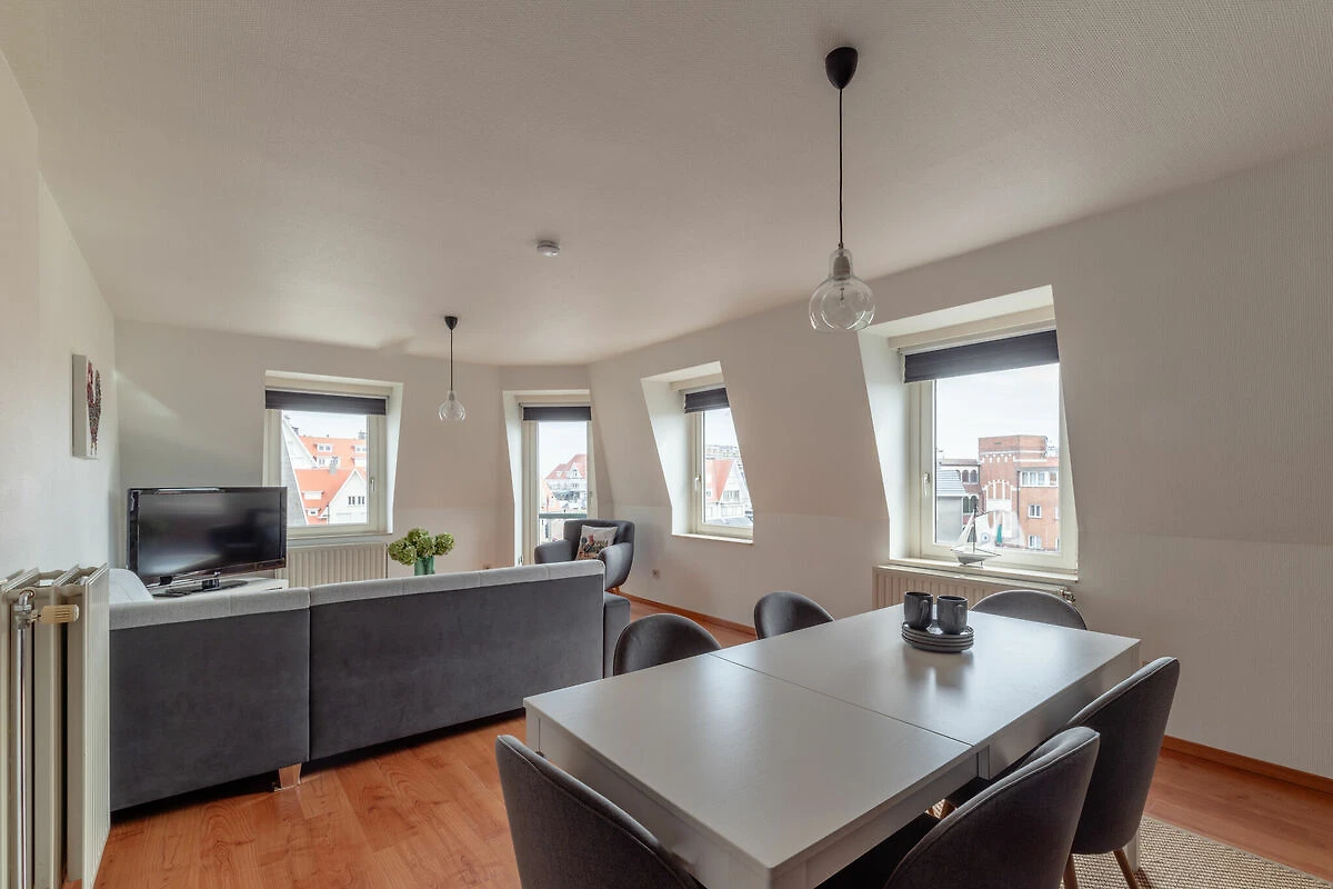 Betreten Sie diese wunderschön renovierte Wohnung nur 50 Meter vom Strand entfernt und genießen Sie den Küstencharme von De Haan. Stilvoll eingerichtet und mit viel Komfort ausgestattet, bietet die Wohnung ein warmes und einladendes Ambiente – ideal für Familien oder Gruppen. Genießen Sie vom geräumigen Wohnzimmer aus den freien Blick auf den charmanten Leopoldplein und das historische Konzessionsgebiet. Dank der einzigartigen Raumaufteilung auf zwei Ebenen – darunter ein gemütliches Schlafzimmer im Dachgeschoss – findet jeder seinen eigenen erholsamen Rückzugsort.
