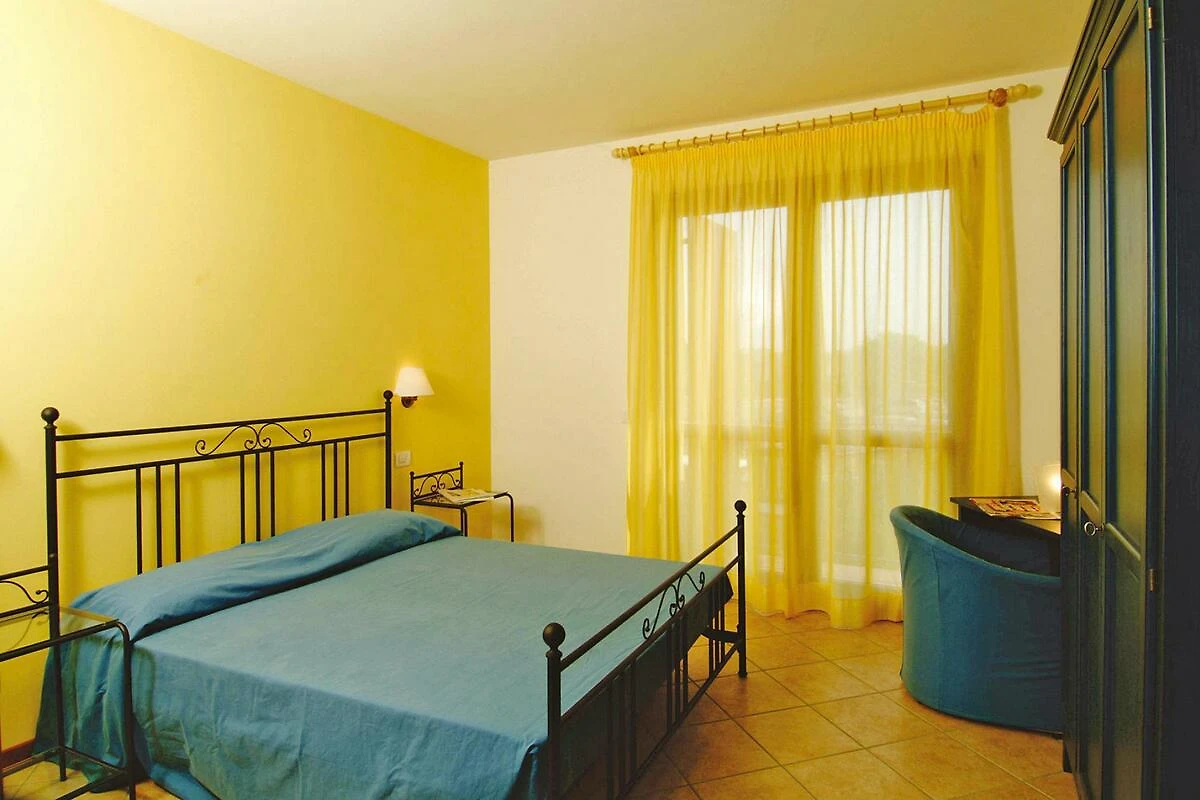 Wohnzimmer(Doppelschlafcouch, TV(Satellit, Deutsch Fernsehsender)), Kochnische(Kochplatte(4 Kochplatten, elektrisch), Kühlschrank), Schlafzimmer(Doppelbett), Schlafzimmer(2x Einzelbett), Badezimmer(Dusche, Toilette), Wasserrutsche, Bar, Balkon oder Terrasse, Heizung, Klimaanlage, Gartenmöbel, Liegen, Parkplatz, Sonnenschirm, Pool(Gemeinschaftliche Nutzung mit anderen Gästen, Seperates Kinderschwimmbad (Tiefe 50 cm), geöffnet von Mai bis einschließlich Sep)