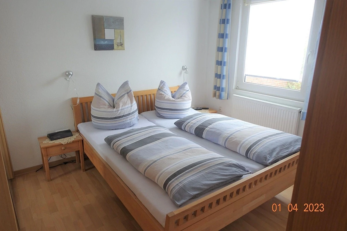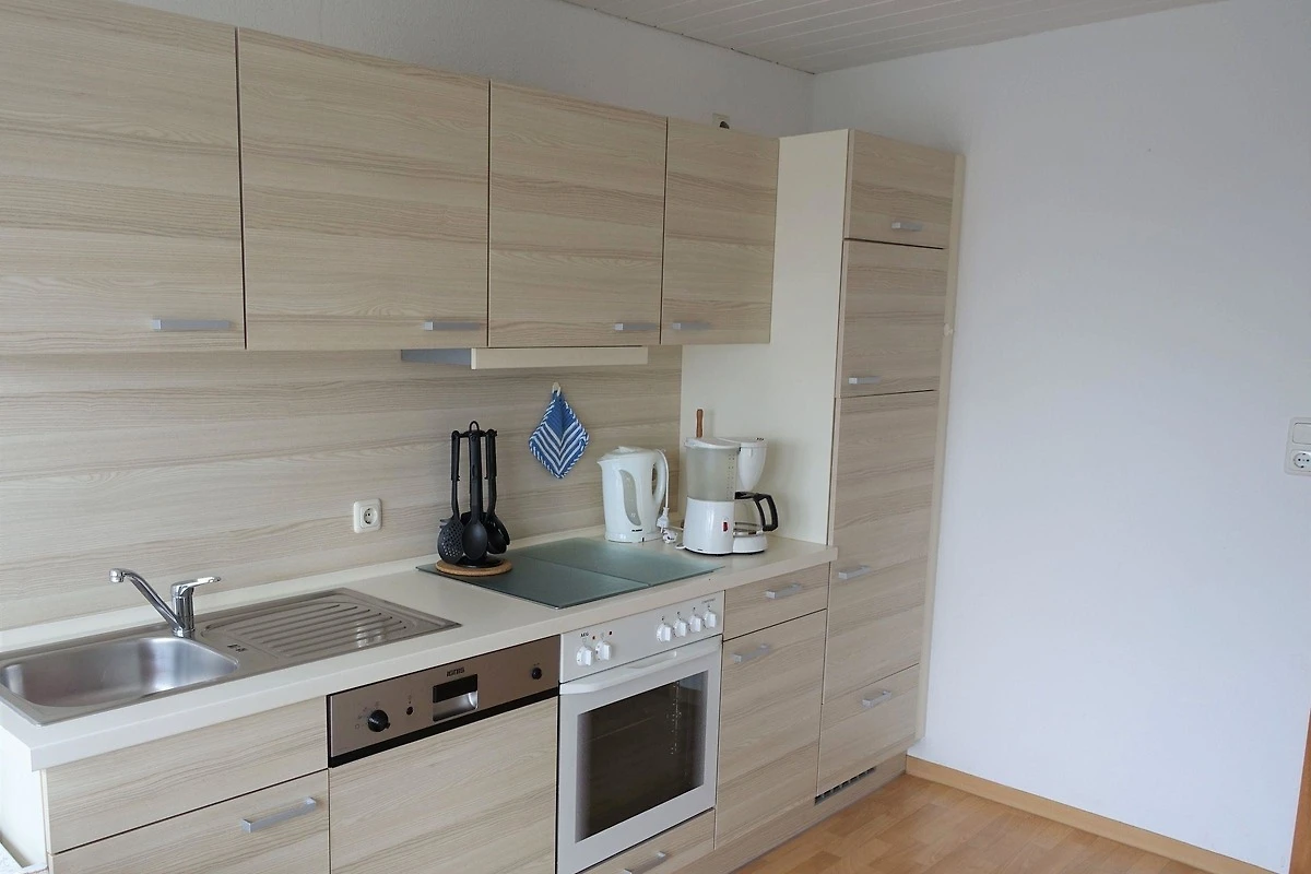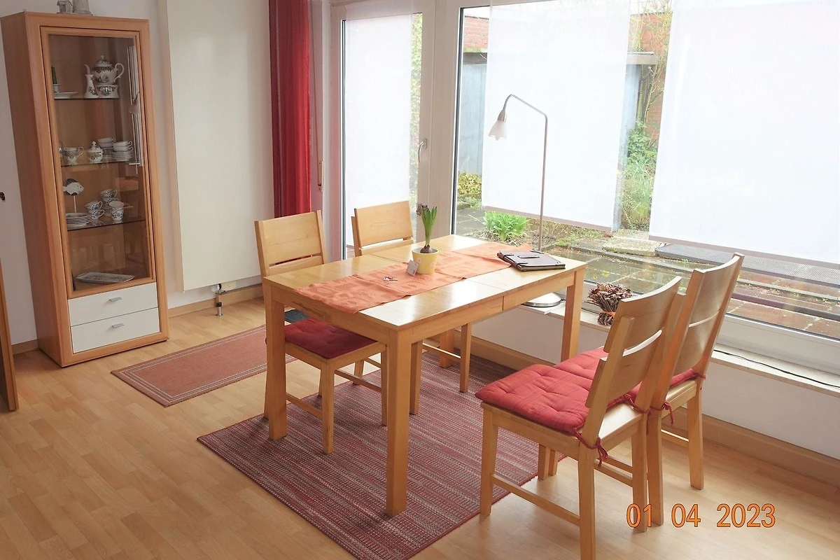 Die Ferienwohnung bietet eine komfortable und allergikergeeignete Unterkunft, die ideal für Familien oder Gruppen ist. Sie verfügt über zwei gemütliche Schlafzimmer mit jeweils einem Doppelbett, die für erholsame Nächte sorgen. Die separate Küche ist vollständig ausgestattet mit einem Geschirrspüler, Elektro- und Gasherd, Backofen, Mikrowelle sowie Kühlschrank und Gefriermöglichkeit, um die Zubereitung von Mahlzeiten einfach und bequem zu gestalten. Ein Essbereich mit Tisch lädt zu gemeinsamen Mahlzeiten ein.