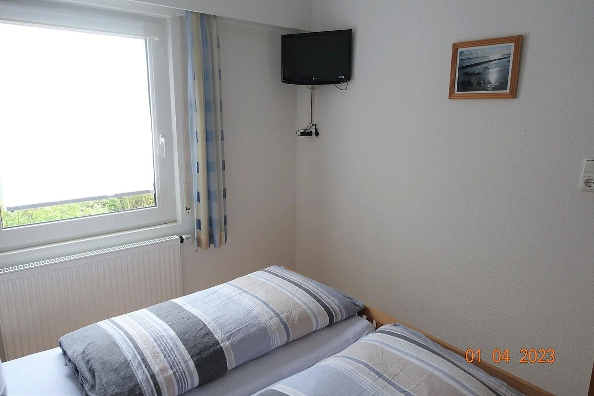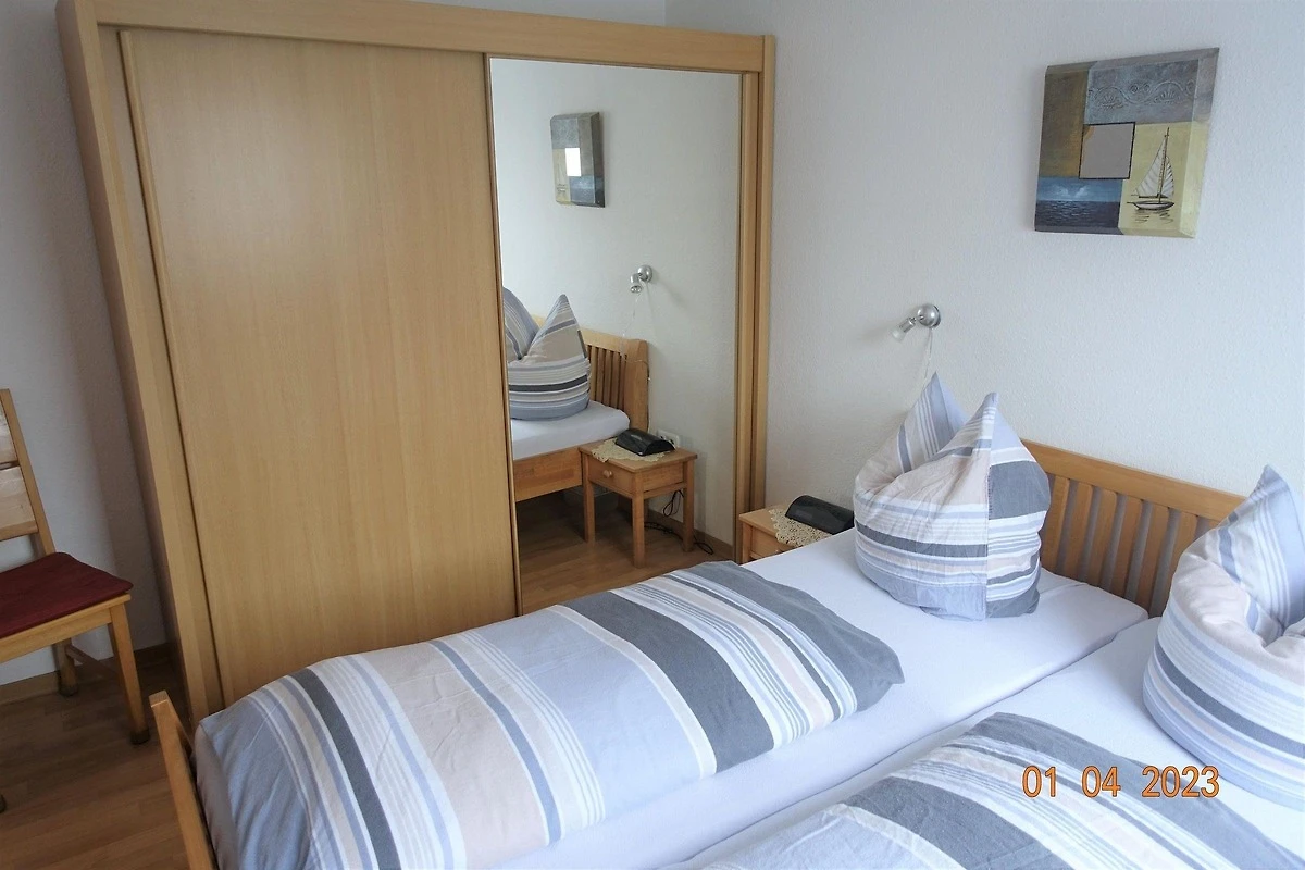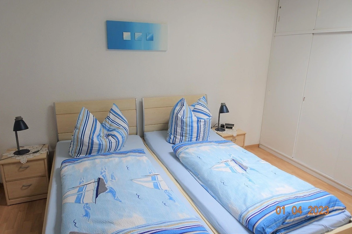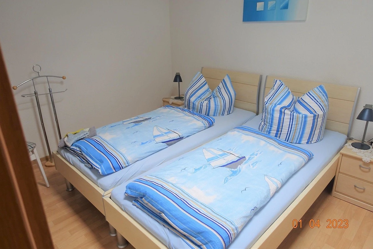 Die Ferienwohnung bietet eine komfortable und allergikergeeignete Unterkunft, die ideal für Familien oder Gruppen ist. Sie verfügt über zwei gemütliche Schlafzimmer mit jeweils einem Doppelbett, die für erholsame Nächte sorgen. Die separate Küche ist vollständig ausgestattet mit einem Geschirrspüler, Elektro- und Gasherd, Backofen, Mikrowelle sowie Kühlschrank und Gefriermöglichkeit, um die Zubereitung von Mahlzeiten einfach und bequem zu gestalten. Ein Essbereich mit Tisch lädt zu gemeinsamen Mahlzeiten ein.