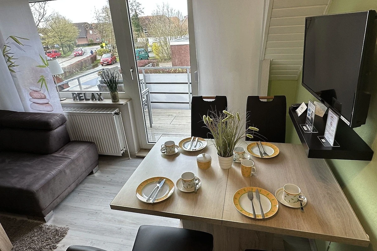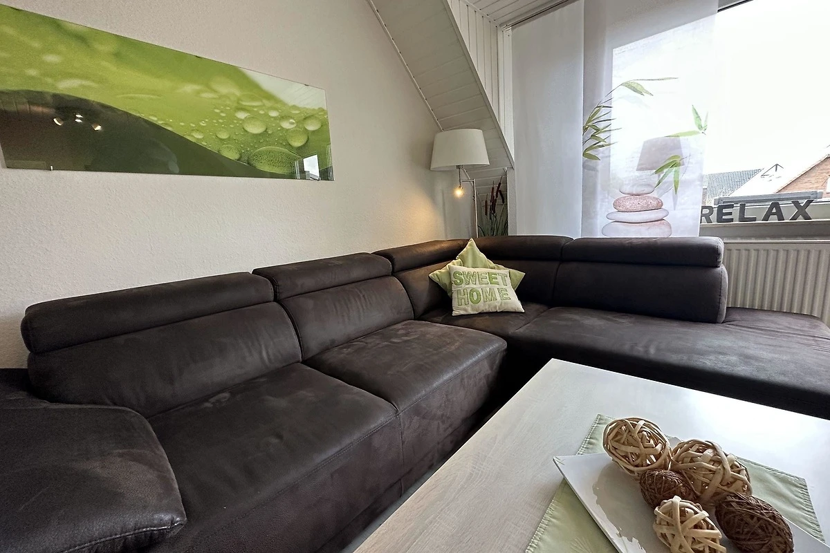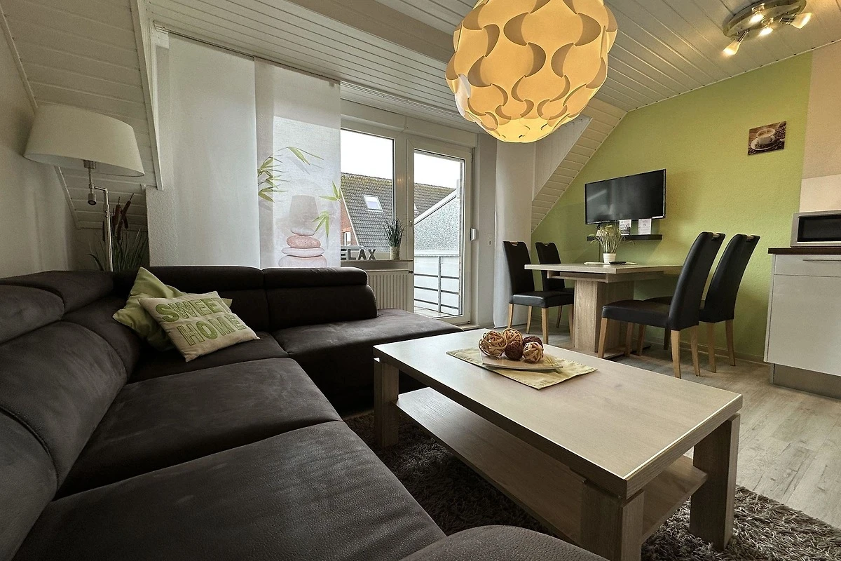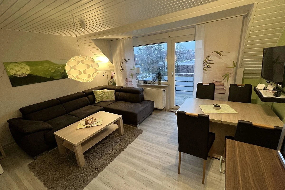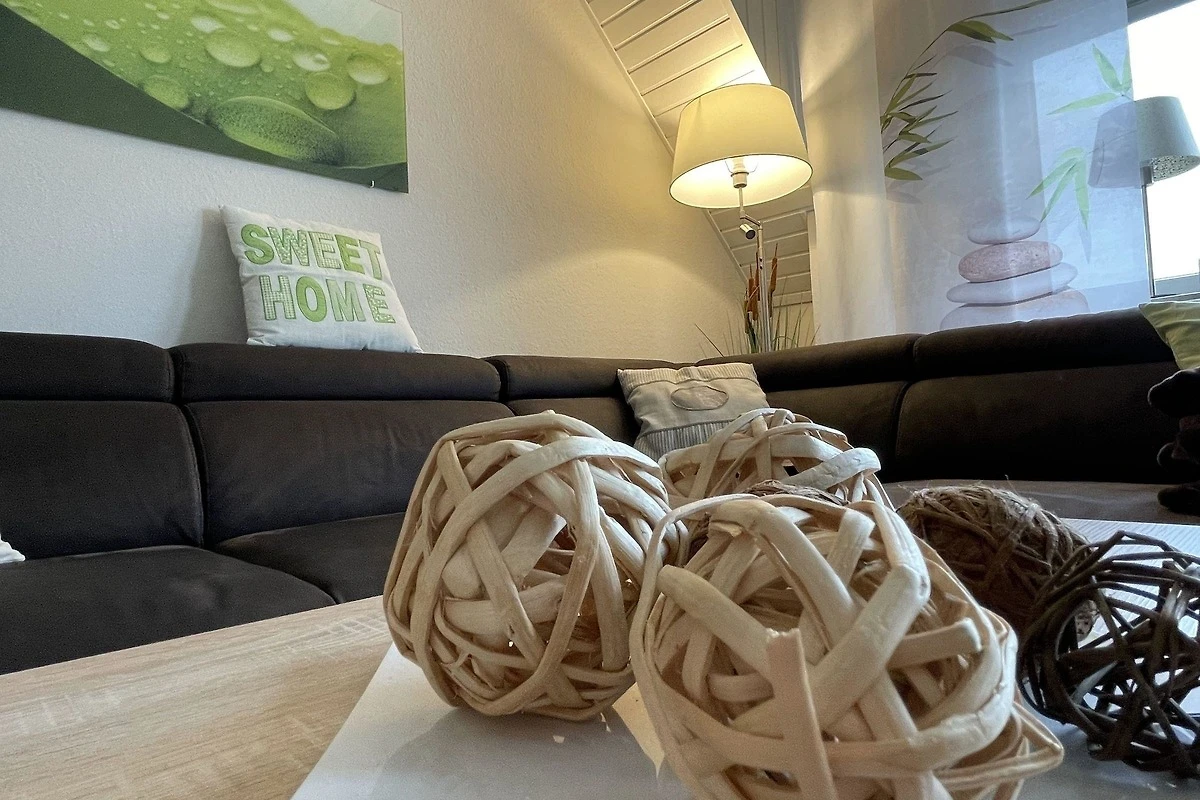 Die Ferienwohnung verfügt über eine moderne Einrichtung. Der Wohn/Essbereich bietet genügend Platz zum Entspannen. Eine voll ausgestattete Küche, mit allem was man braucht, runden diesen Raum ab. Weiter finden Sie hier ein modernes Duschbad. Es wurde mit viel Liebe zum Detail eingerichtet. Hier wurde Wohlfühlatmosphäre geschaffen.