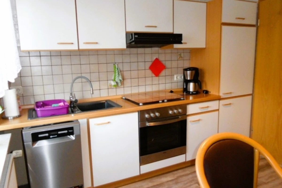 Die Wohnküche läd zu einem gemütlichem Essen ein, und ist ausgestattet mit einem Backofen, Kühlschrank, Wasserkocher, Kaffeemaschine,Toaster und einer Geschirrspülmaschine und vielem mehr.