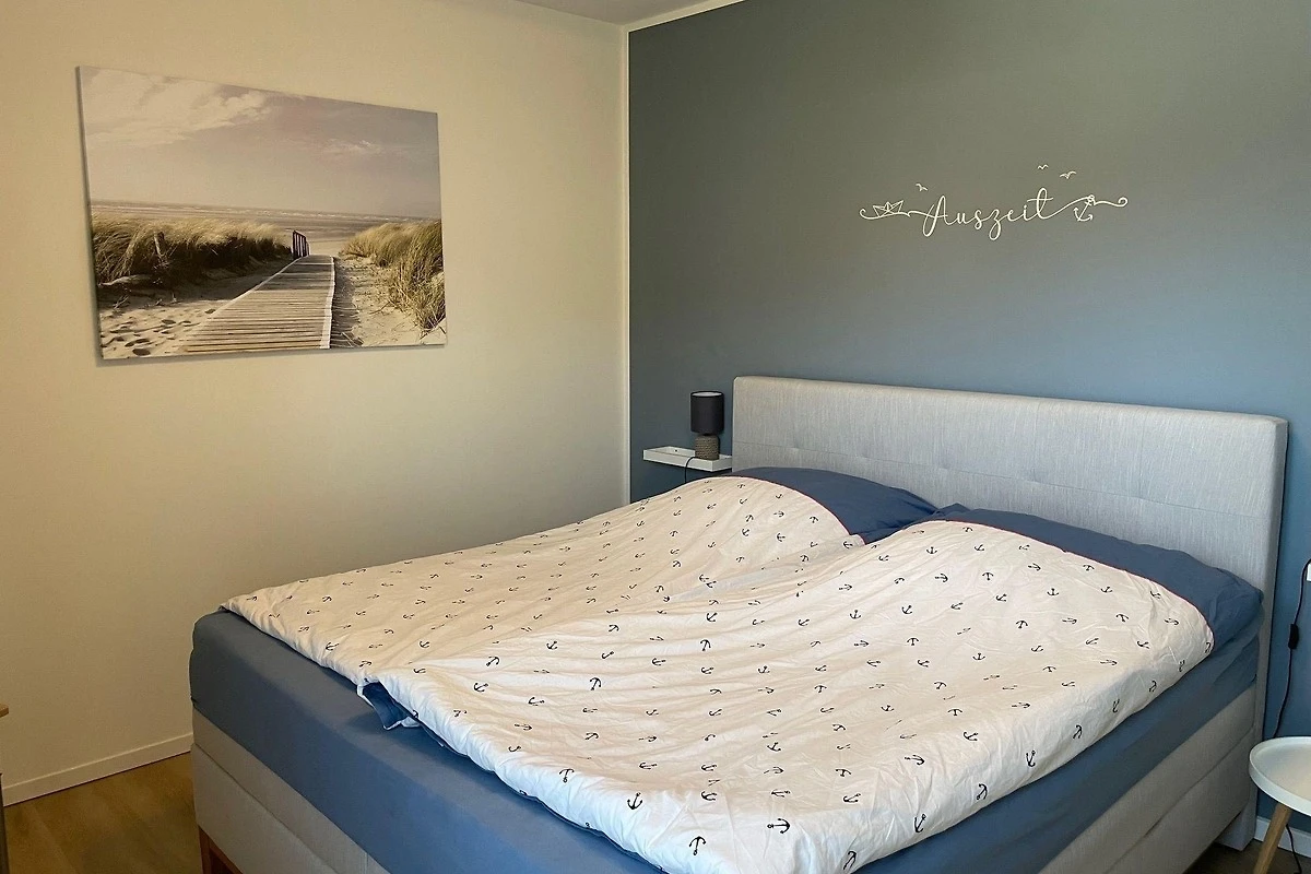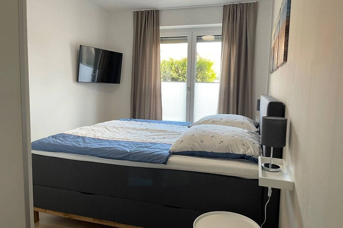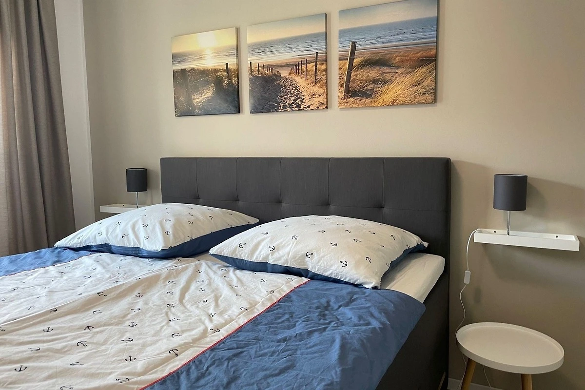 - zwei Schlafzimmer mit je einem hochwertigen Boxspringbett (2 Einzelmatratzen 90 x 180 cm mit durchgängigem Matratzenschoner 180x200 cm), Kleiderschrank und TV