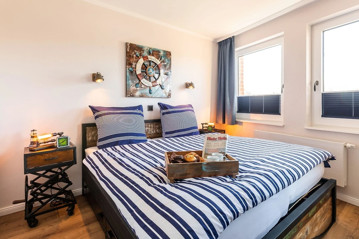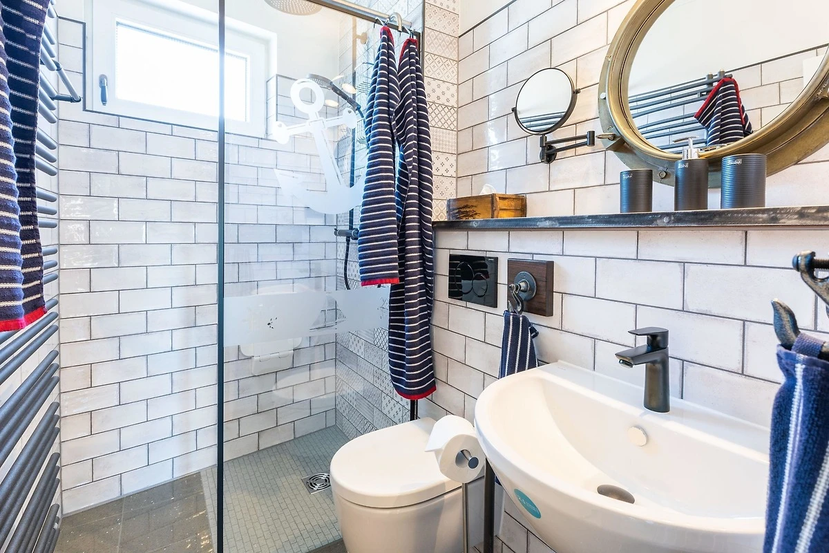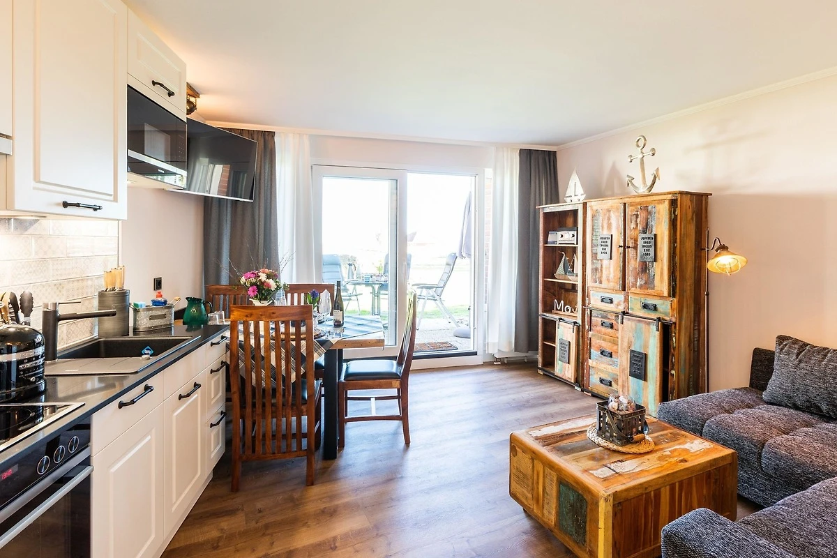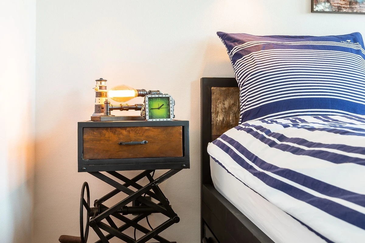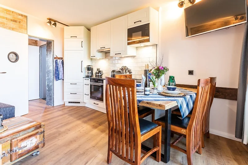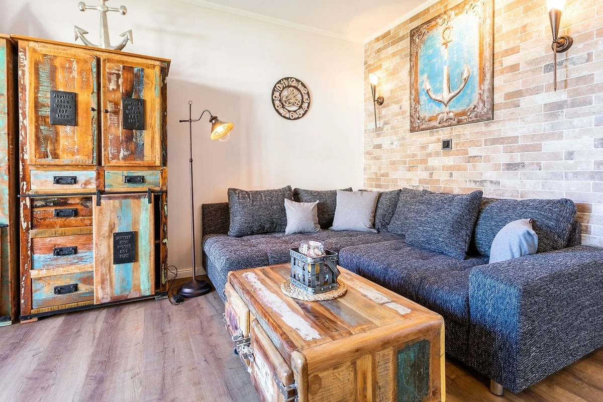 Unsere komplett kernsanierte und neu eingerichtete Ferienwohnung mit Terrasse wurde ist hell und modern im maritimer Shabby-Chic meets Industrial Style eingerichtet.