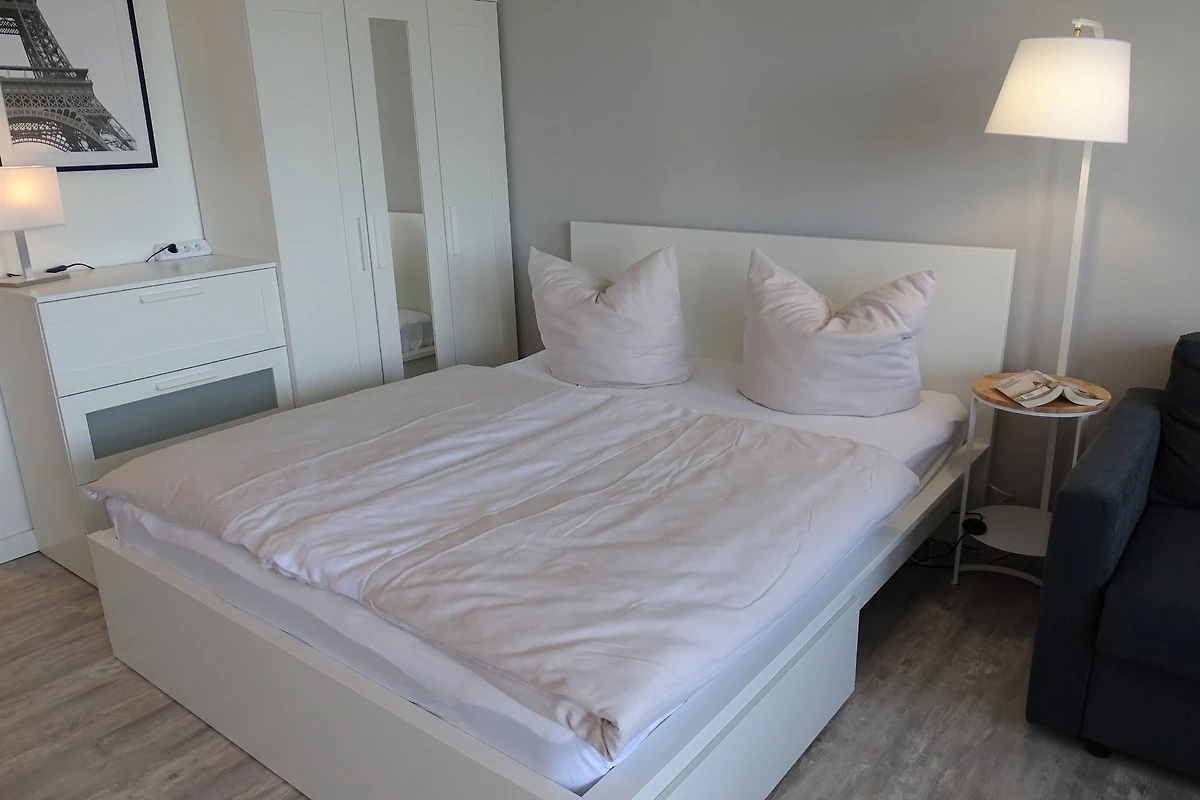 Bitte beachten, das Doppelbett hat die Masse 160x200cm mit durchgängiger Matratze. Die Fussbodenbeläge bestehen aus: Fliesen im Bad und Design-Planken im Wohn- und Schlafbereich. Zur Ferienwohnung gehört ein Kfz- Stellplatz.