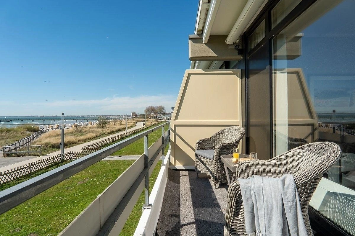 Vom Wohnzimmer, sowie dem angrenzenden Südbalkon hat man einen traumhaften Ausblick zur Ostsee - der Badestrand liegt direkt vor der Tür.