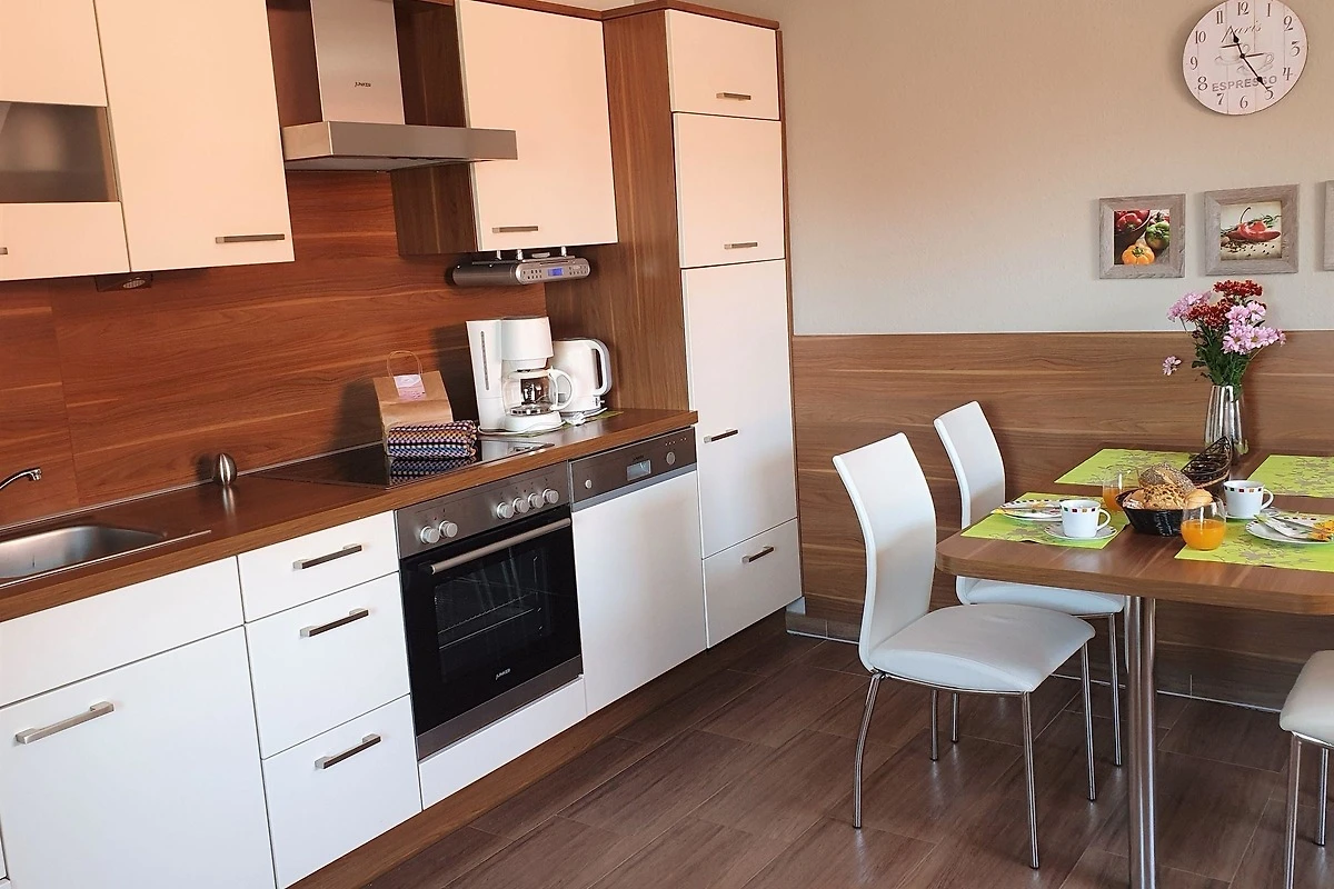 Die Wohnung verfügt über eine moderne Einrichtung. Der Wohn/Essbereich bietet genügend Platz zum Entspannen. Eine voll ausgestattete Küche, mit allem was man braucht, runden diesen Raum ab. Weiter finden Sie hier ein zwei gemütliche Schlafzimmer sowie 2 moderne Badezimmer - beide mit Dusche. Es wurde mit viel Liebe zum Detail eingerichtet. Hier wurde Wohlfühlatmosphäre geschaffen.