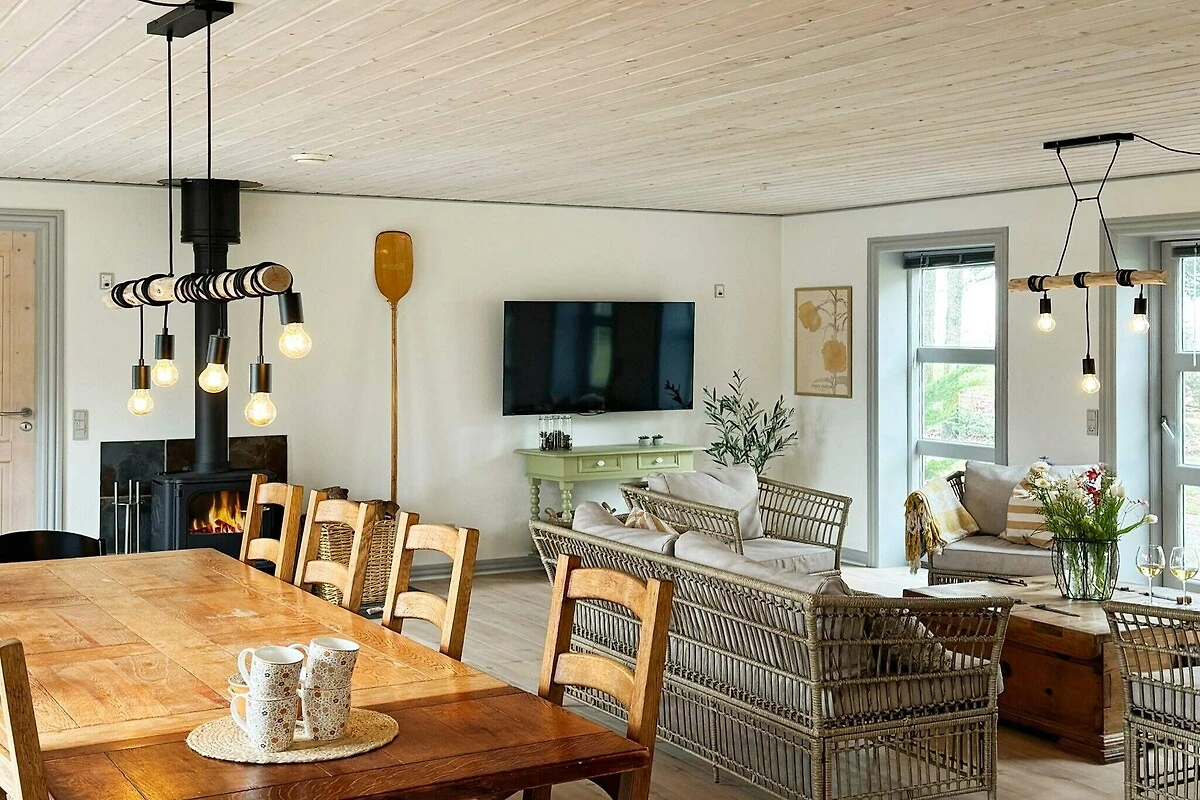 Schönes Ferienhaus in der äußeren Reihe am Wasser mit Blick auf den Fjord sowohl vom Haus als auch vom 5000 m² großen Naturgrundstück. Es gibt viel Platz zum Spielen und Entspannen. Eigener Bouleplatz, Wildnisbad, Lagerfeuerplatz im Garten. Nur ca. 100 m zum Fjord. Am Strand gibt es gute Bademöglichkeiten, gemeinsame Badestege, Grill- und Sitzgarnituren, einen Spielplatz und Angelmöglichkeiten für Meerforellen. Von zwei Schlafzimmern aus können Sie mit einem atemberaubenden Blick auf den Fjord aufwachen und direkt auf die Terrasse treten. Küche mit Geschirrspüler und Wohnzimmer mit Fernseher mit Chromecast und WLAN. Schlafmöglichkeiten: Es gibt zwei große Schlafzimmer. Ein Schlafzimmer hat ein Doppelbett und ein 120 cm breites Bett. Das andere Schlafzimmer hat ein Doppelbett und eine gemütliche Ecke. Im Anbau gibt es ein 140 cm breites Doppelbett und ein Zimmer mit zwei Einzelbetten, einer gemütlichen Ecke und einem kleinen Kühlschrank. Das Ferienhaus verfügt über zwei Badezimmer. Zusätzlich sind ein Kinderbett, ein Wickeltisch und ein Hochstuhl vorhanden. Holzofen im Wohnzimmer. Das Haus wird mit einer energieeffizienten Luft-Luft-Wärmepumpe und Strom beheizt. Privater Bouleplatz im Garten. 5 x 15 Meter Platz mit Blick auf den Fjord. Ein wunderbares, entspannendes Spiel für die ganze Familie. Neues Wildnisbad für 6 Personen. Entspanntes Vergnügen mit Panoramablick auf den Fjord. Kostenloses Brennholz wird bereitgestellt. Es gibt ein 2-Personen-Kajak und Schwimmwesten (Benutzung auf eigene Gefahr/Versicherung). Es gibt eine Terrasse mit Gartenmöbeln an der Süd- und Nordseite des Hauses sowie eine überdachte Terrasse mit Gartenmöbeln. Hier können Sie das wechselnde Wetter beobachten und über den Fjord blicken, wo Himmel und Wasser im Bruchteil einer Sekunde ihre Farben und Wolkenformationen ändern können. Nicht an Jugendgruppen vermietbar.Kurz vor Ihrem Ankunftsdatum kann eine rückzahlbare Kaution erhoben werden. Die Kaution stellt sicher, dass Ihr Aufenthalt reibungslos verläuft, und deckt eventuelle Zusatzleistungen oder Verbrauchskosten ab.Diese Kaution deckt den Verbrauch von Nebenkosten während Ihres Aufenthalts sowie zusätzliche in Anspruch genommene Leistungen ab.Der endgültige Betrag wird anhand der tatsächlichen Zählerstände und Nutzung zusätzlicher Services angepasst. Ein etwaiger Restbetrag wird Ihnen innerhalb von 21 Tagen nach dem Check-out zurückerstattet.Die Kaution dient lediglich als Vorauszahlung für Leistungen, die Sie ohnehin bezahlen würden, und ermöglicht einen reibungslosen Ablauf Ihres Aufenthalts und Check-outs.