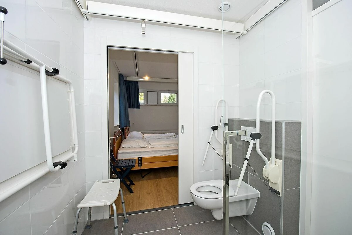 Parterre: (Eingangshalle(Toilette), Wohnzimmer(TV), offene Küche(Wasserkocher, Kochherd(4 Kochplatten, Induktion), Kaffeemaschine(pads), Spülmaschine, Kühlschrank(+ Gefrierfach)), Schlafzimmer(2x Einzelbett angepasst für Behinderte, TV), Badezimmer(Fußbodenheizung)(Dusche, Waschbecken, Toilette(angepasst für Behinderte)))