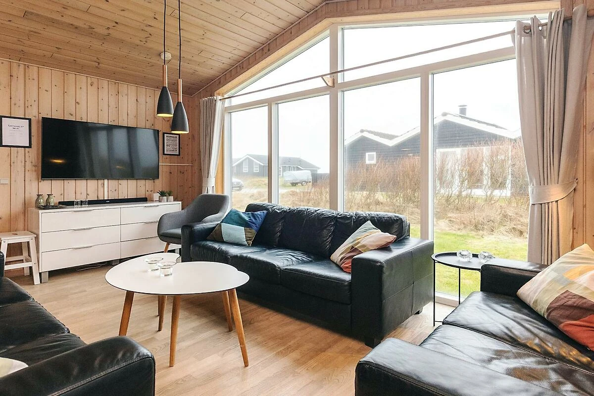 Ferienhaus nur ca. 300 m von der Nordseeküste bei Løkken entfernt. Vom Grundstück aus gibt es einen zusätzlichen Meerblick sowie Ausblick bis nach Rubjerg Knude. Das helle, geräumige Ferienhaus hat eine wohnliche Atmosphäre und eine schöne Inneneinrichtung. Der große Raum mit Wohnzimmer, Essbereich und offener Küche ermöglicht es, alle Aufgaben des Urlaubs gemeinsam zu erledigen. Es gibt auch viel Platz für Gemütlichkeit und Entspannung. In den Wintermonaten verfügen diese Räume über eine Fußbodenheizung. Das Wohnzimmer stellt sowohl einen Fernseher als auch einen Holzofen bereit. Der größte Teil des Hauses ist mit Holzböden ausgelegt. Mit Holzofen und Wärmepumpe im Haus ist der Verbrauch zudem energieeffizient. Draußen wurde auf einem Teil des Grundstücks eine Rasenfläche angelegt, die zahlreiche Möglichkeiten zum Spielen und für andere Aktivitäten bietet. Für die Kleinsten gibt es u.a. Schaukel und Sandkasten. Vom Haus aus hat man Zugang zu den großen Terrassenflächen, die teilweise überdacht sind und auf denen man sowohl Sonne als auch Schatten finden kann. Auf der Terrasse gibt es auch einen Gartengrill und reichlich Gelegenheit, den Sonnenuntergang über dem Meer zu betrachtenn. Keine Vermietung an Jugendgruppen erwünscht!Kurz vor Ihrem Ankunftsdatum kann eine rückzahlbare Kaution erhoben werden. Die Kaution stellt sicher, dass Ihr Aufenthalt reibungslos verläuft, und deckt eventuelle Zusatzleistungen oder Verbrauchskosten ab.Diese Kaution deckt den Verbrauch von Nebenkosten während Ihres Aufenthalts sowie zusätzliche in Anspruch genommene Leistungen ab.Der endgültige Betrag wird anhand der tatsächlichen Zählerstände und Nutzung zusätzlicher Services angepasst. Ein etwaiger Restbetrag wird Ihnen innerhalb von 21 Tagen nach dem Check-out zurückerstattet.Die Kaution dient lediglich als Vorauszahlung für Leistungen, die Sie ohnehin bezahlen würden, und ermöglicht einen reibungslosen Ablauf Ihres Aufenthalts und Check-outs.