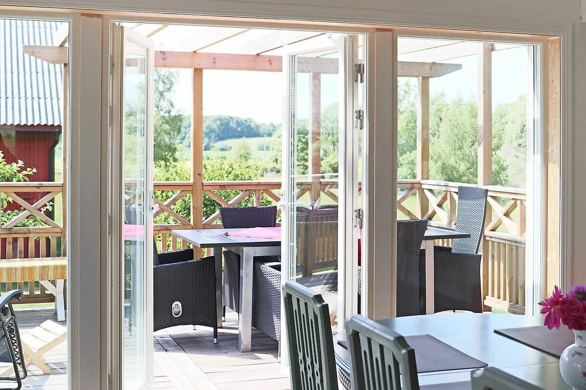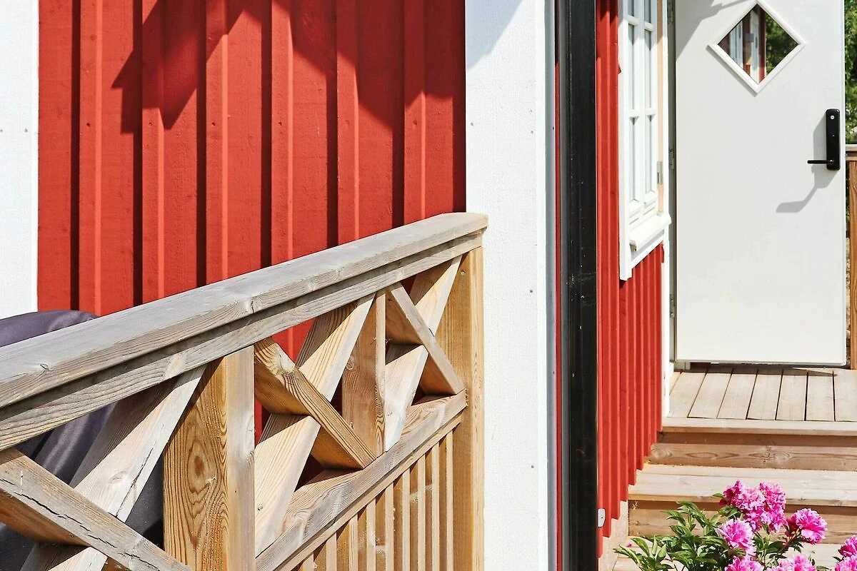 Die große Terrasse war ein Highlight, ideal für Morgenkaffee und abendliche Grillabende, in der Nähe der Festung Varberg und lokaler Angelseen, was es zu einem perfekten Rückzugsort machte.