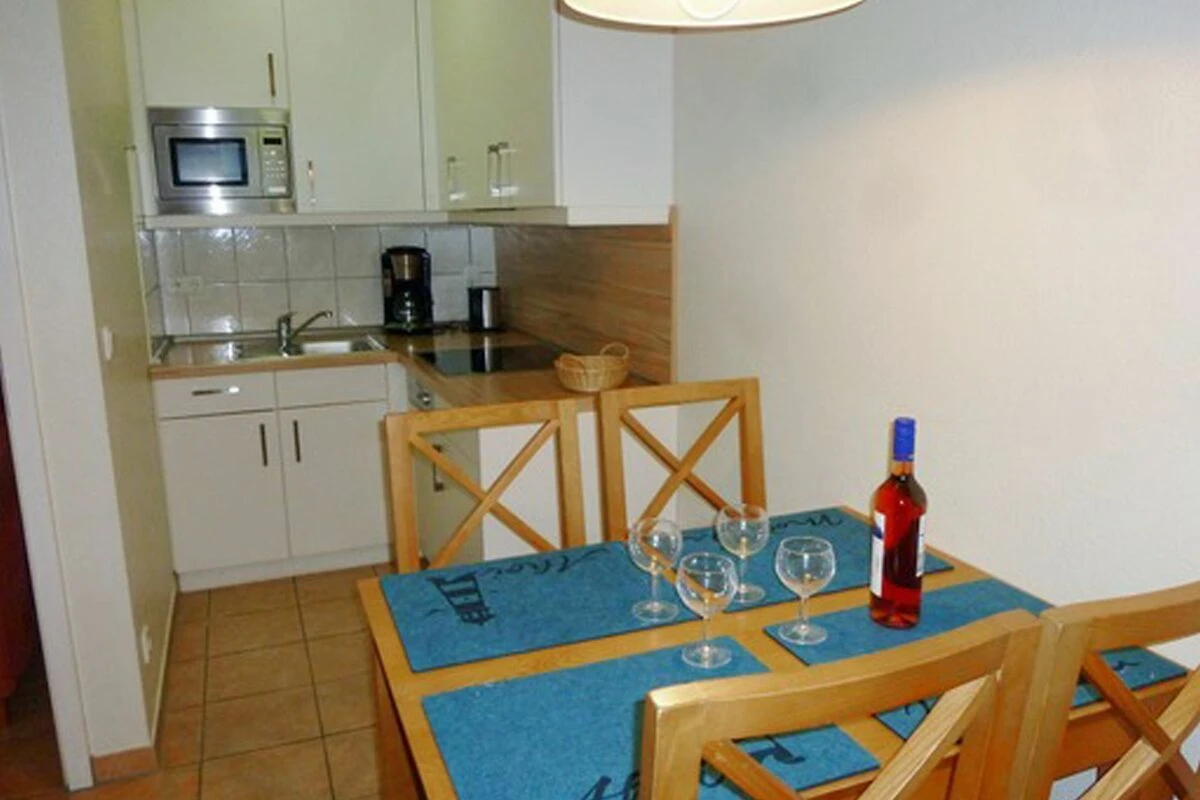 Die Ferienwohnung ist ideal für 2 Personen und bietet zusätzliche Aufbettung für 2 weitere Personen. Im Wihnbereich befindet sich ein neues Schlafsofa. Die Wohnung besteht aus einem Wohnbereich mit komplett ausgestatteter Küchenzeile. Am Schlafzimmer angrenzend, befindet sich ein Bad mit Dusche und WC. Vom Wohnzimmer mit Balkon, können sie in Ruhe den Tag beginnen und die Abendsonne geniessen.