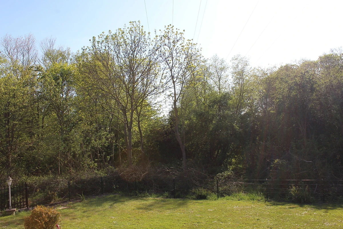 Vom Wohnzimmer blickt man in die freie Natur.