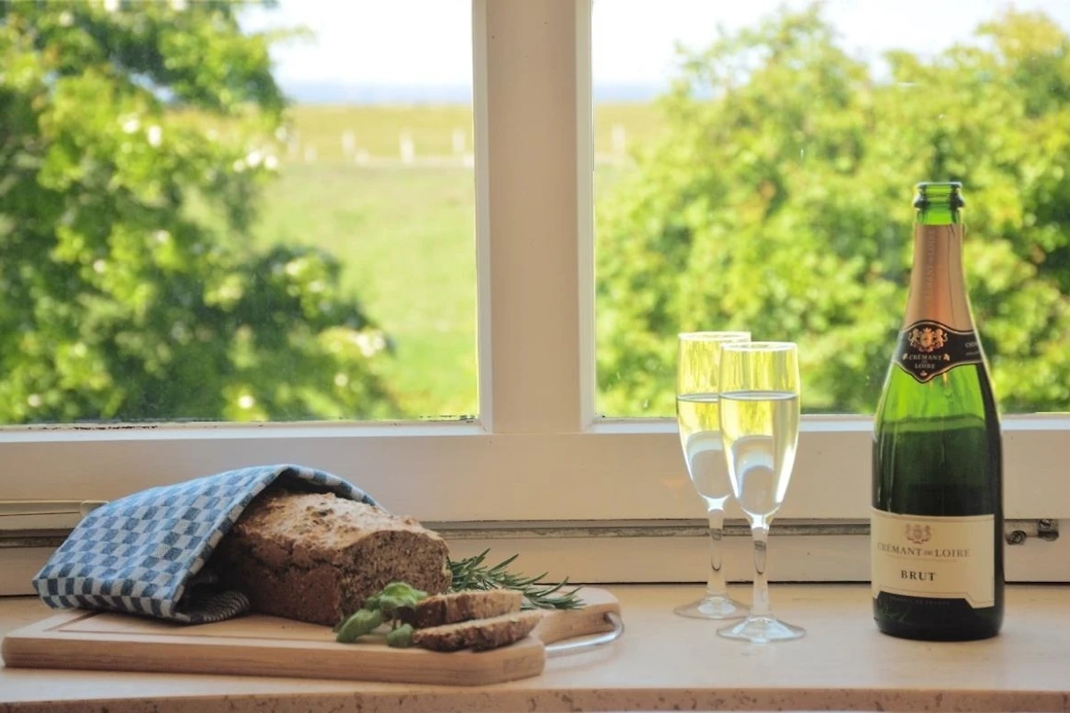 Die Ostsee ist vom Strandhaus aus nur einen Steinwurf entfernt, denn hinter dem grossen Garten, den alle Gäste gemeinsam nutzen können, sind es nur noch Deich und Weiden, die einen vom Meer trennen.