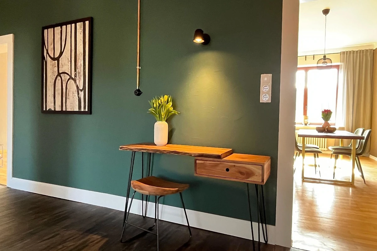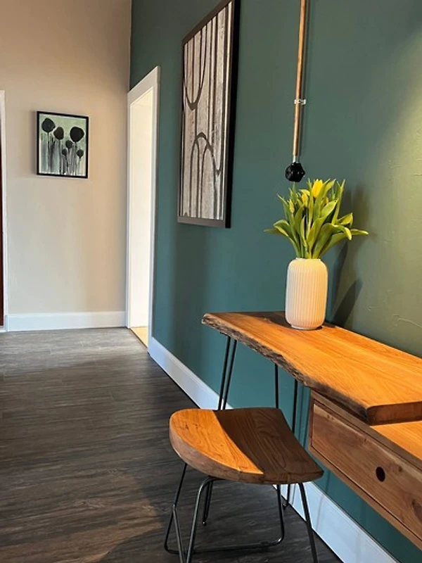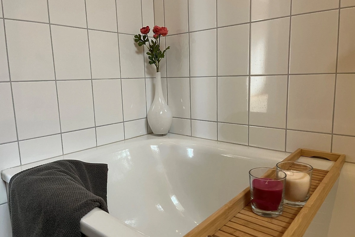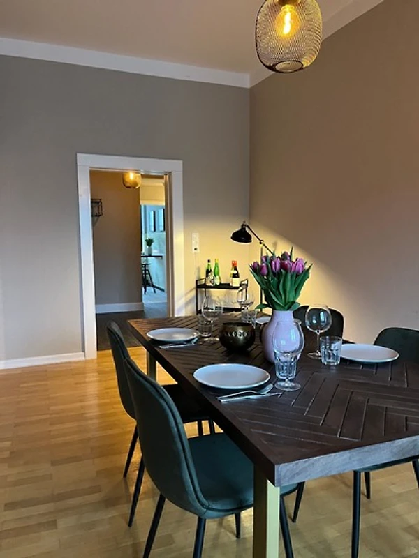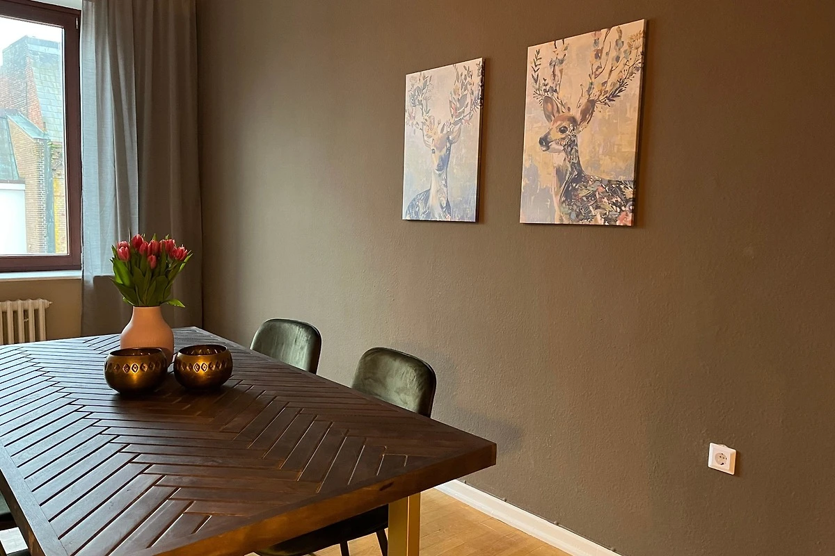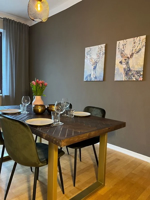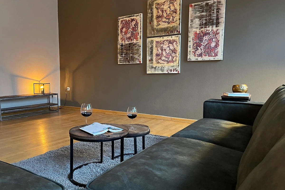 Hanna´s Place bietet auf 127 qm jede Menge Raum, um sich wohl zu fühlen. Ob mit der Familie oder den Freunden kannst Du es Dir hier gut gehen lassen. Zwei Schlafzimmer, ein Bad mit Dusche und Badewanne sowie eine weitere Toilette, eine Küche sowie das Ess- und Wohnzimmer stehen zur Verfügung. Darüber hinaus gehört zum Appartment eine grosszügige Terrasse, die sowohl Morgens als Abends in der Sonne liegt. Die Wohnung ist grosszügig und gemütlich. Die warmen Farben sorgen sofort für Wohlfühlstimmung. In der vollausgestatteten Küche macht Kochen Spass. Kühlschrank, Backofen, Herd, Kaffeemaschine und Wasserkocher sind vorhanden. Ebenso werden Bettwäsche, Handtücher und Küchentücher für den Aufenthalt zur Verfügung gestellt. Die Wohnung teilt sich auf in ein grosses Wohnzimmer mit Fernsehen, ein separates Esszimmer, eine Küche mit Sitzmöglichkeit, eine grosser Balkon mit Sitzmöbeln, ein Schlafzimmer mit einem Doppelbett, einem weiteren Schlafzimmer mit zwei Einzelbetten, ein Bad mit Dusche und Badewanne sowie eine weitere separate Toilette. In grossen Einbauschränken gibt es jede Menge Platz für Gepäck und Kleidung. WLAN ist vorhanden. Im Erdgeschoss des Hauses befindet sich ein Fitness Studio, dass von den Gästen der Wohnung kostenfrei genutzt werden kann.