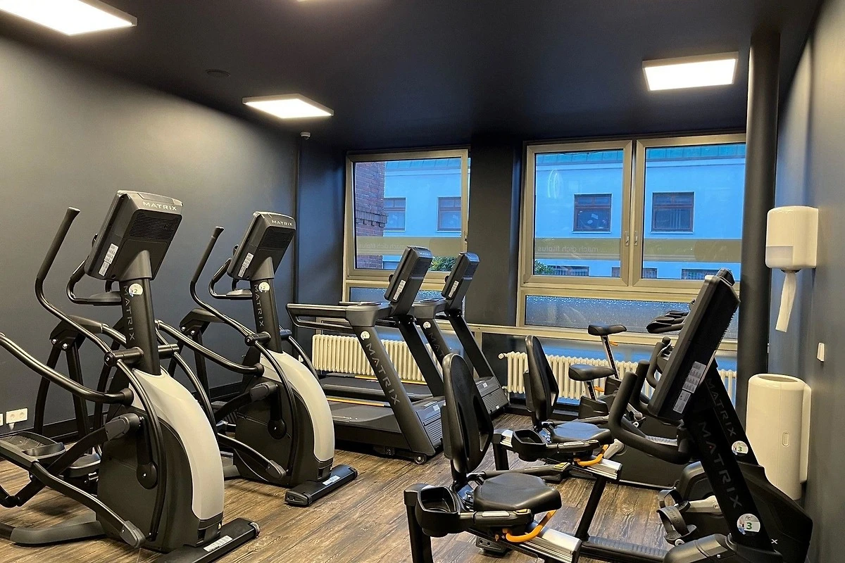 Im Erdgeschoss des Hauses befindet sich ein Fitness Studio, dass von den Gästen der Wohnung kostenfrei genutzt werden kann.