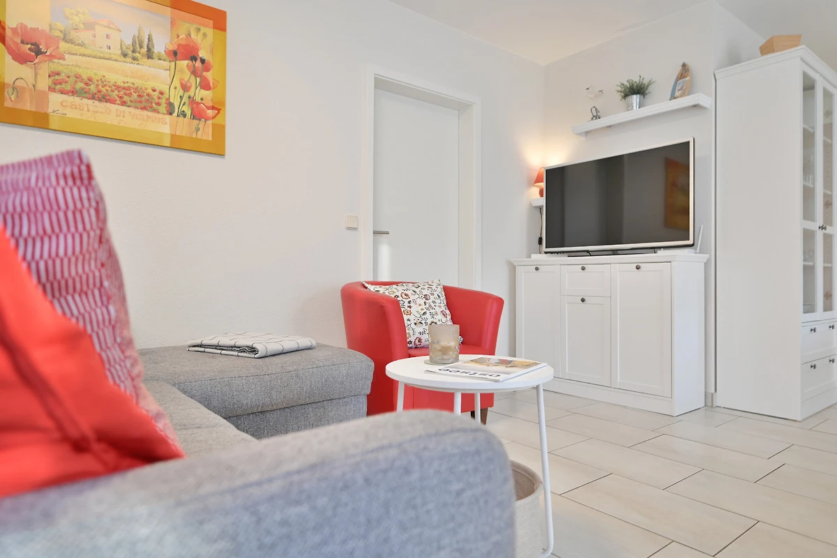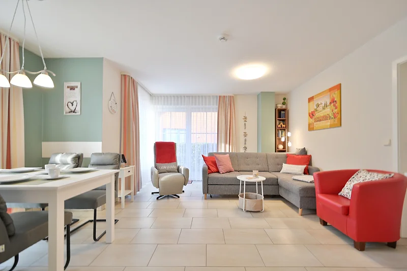 Die liebevolle eingerichtete 2 Zimmer Ferienwohnung von Familie Klöckner im Ostseebad Dahme liegt im Erdgeschoss und verfügt über einen Wohnraum, der durch neue bodentiefe Fenster hell und lichtdurchflutet ist und einen direkten Zugang zur Terrasse hat.