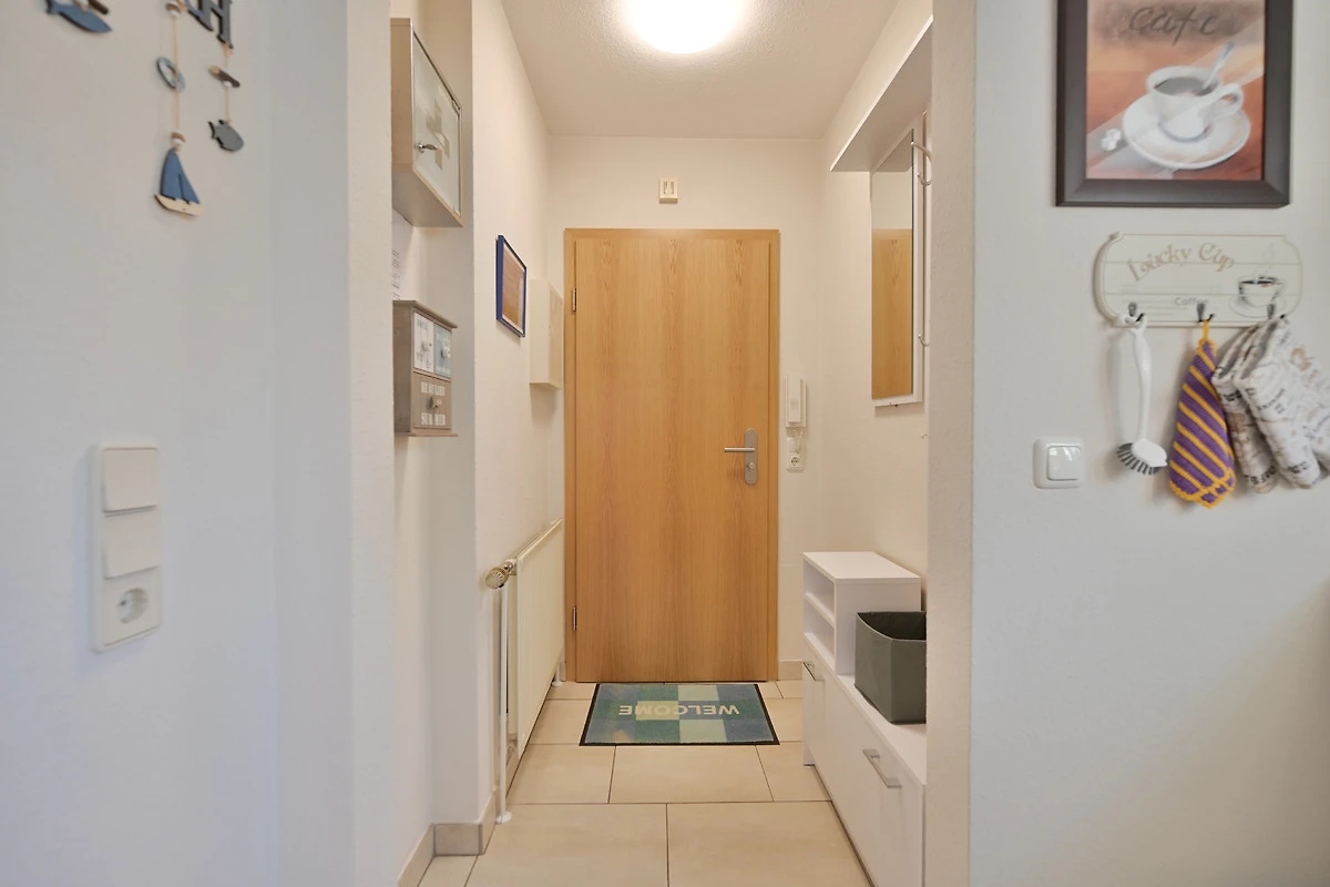 Im Eingangsbereich befindet sich eine Garderobe mit Spiegel.