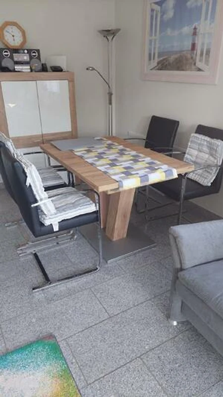 Monis Nordseeperle verfügt über zwei Schlafzimmer. Ein Zimmer mit Doppelbett, das andere mit zwei Einzelbetten.Im Doppelbett Zimmer befindet sich ein Flachbild TV und eine Sitzgelegenheit. Das Bad mit Dusche, WC, Waschtisch und Spiegelschrank befindet sich, wie die Schlafzimmer im 1 OG. Ein Safe steht Ihnen auch zu Verfügung. Im Erdgeschoss finden Sie die neu (2020) eingebaute Küche mit Induktionskochfeld, grosser Kühlschrank mit Fresh Funktion , Geschirrspüler, Toaster, Wasser Kocher und Kaffeemaschine. Mikrowelle und Kleinen Gefrierschrank finden Sie auch vor. Ein Gäste WC und das Wohnzimmer mit Essecke, 2 Couche und Sessel und ein Flachbild TV. Weiter ein DVD Player und eine kleine Stereo Anlage. Auf der Südterrasse mit Garten finden Sie neben dem Strandkorb, der Garten Garnitur und den Relax Liegen auch einen Grill. W Lan steht Ihnen zu Verfügung. Liebe Grüsse! Bettwäsche und Handtücher können dazu gebucht werden.