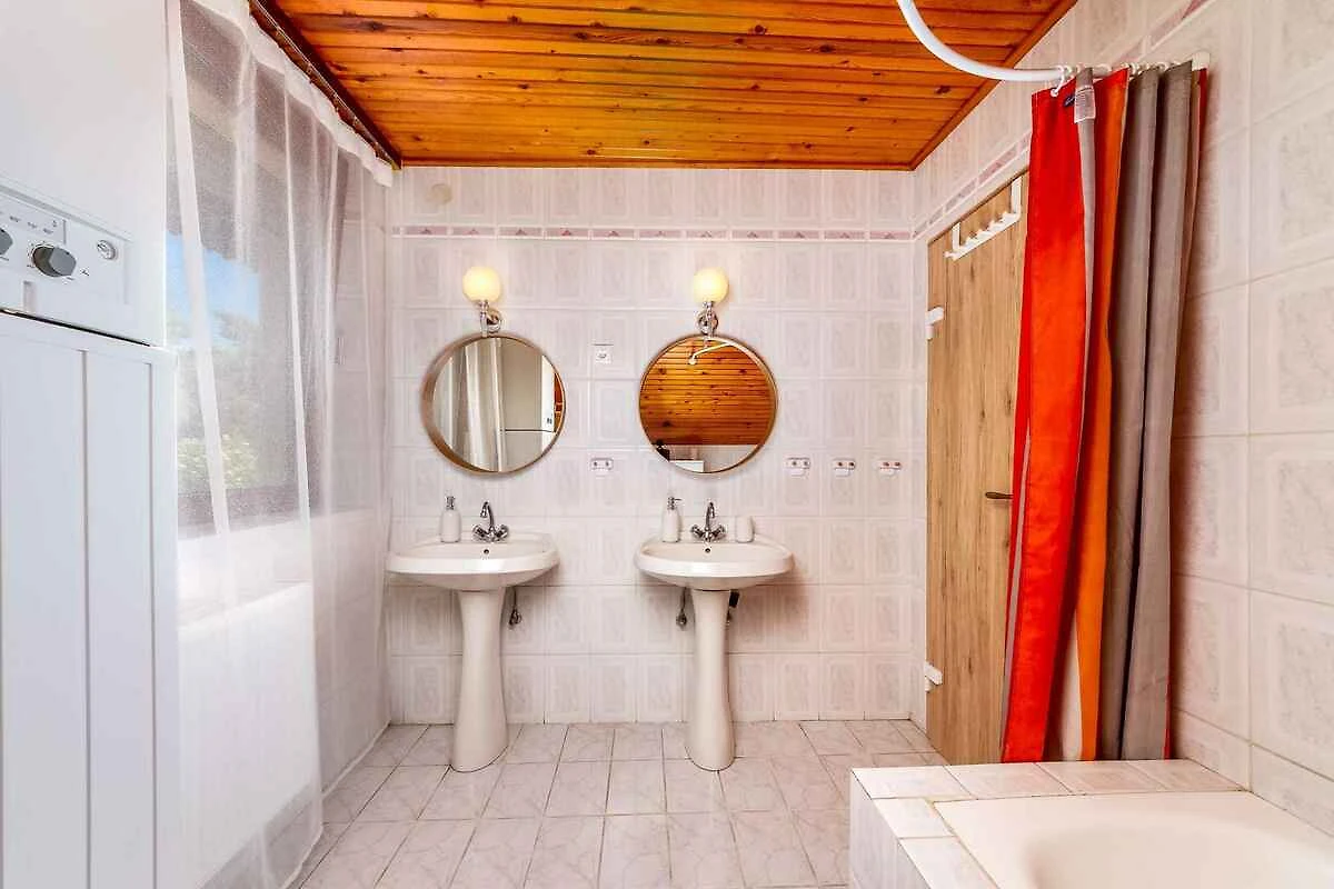 Erdgeschoss: Wohnzimmer mit TV und Essecke (6 Plätze). Schlafzimmer mit 2 Einzelbetten. Küche mit Elektroherd (4 Platten), Backofen, Kühlschrank (Eisfach), Mikrowelle, Kaffeemaschine, Toaster und elektrischem Wasserkocher. Vorraum. Bad mit Badewanne mit Duscheinrichtung, Waschmaschine und 1 Waschbecken. Separates WC mit WC.