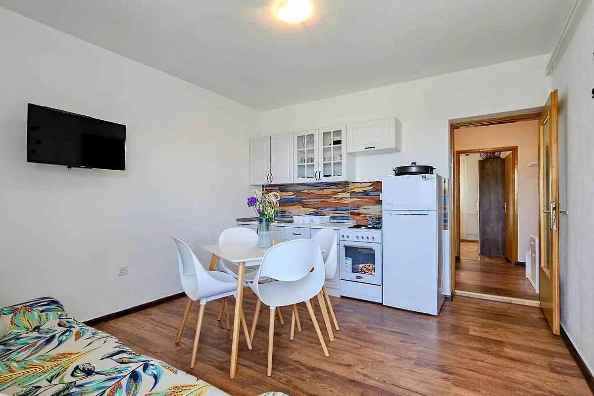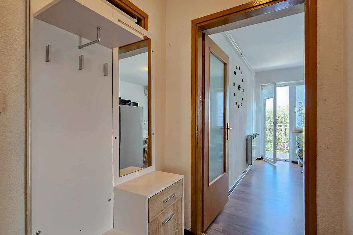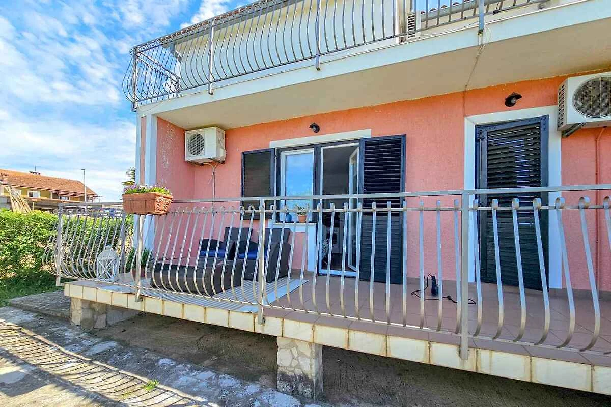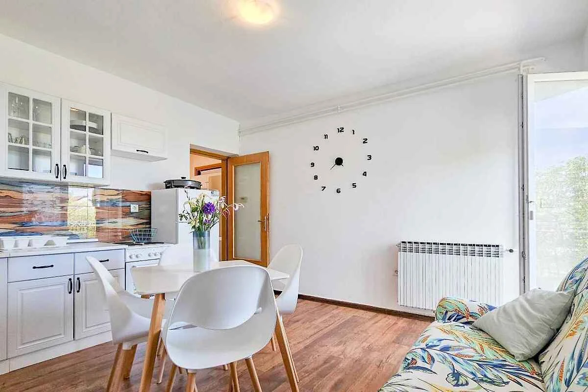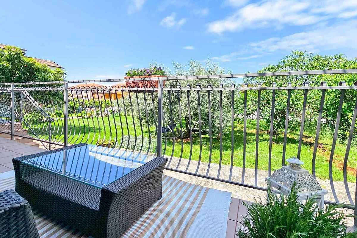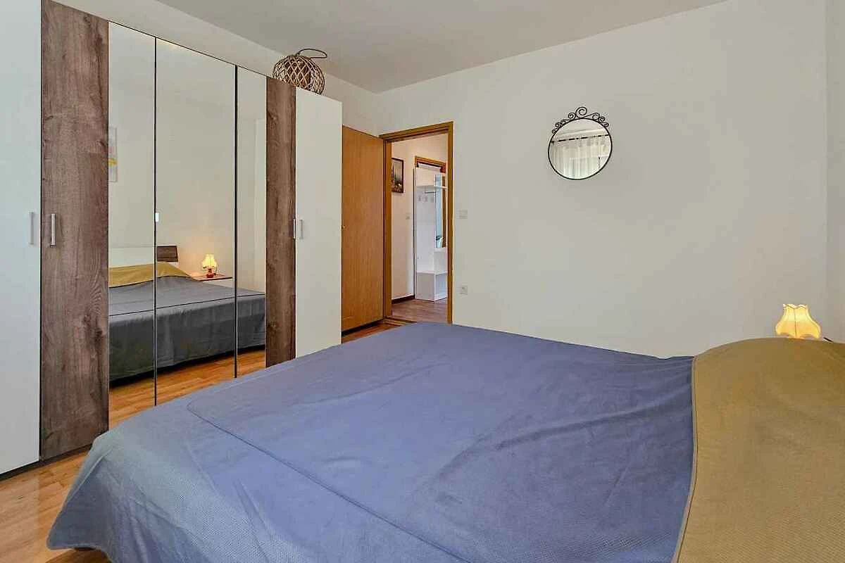 Novigrad. Die Ferienwohnung befindet sich auf einem geschlossenen Gartengrundstück mit Bäumen, von einem Zaun begrenzt. Der Vermieter wohnt ständig im Haus, nutzt jedoch einen separaten Eingang. Die Zufahrt erfolgt über eine Nebenstrasse (asphaltiert). Parkplatz (für 1 Pkw) auf dem Grundstück.
