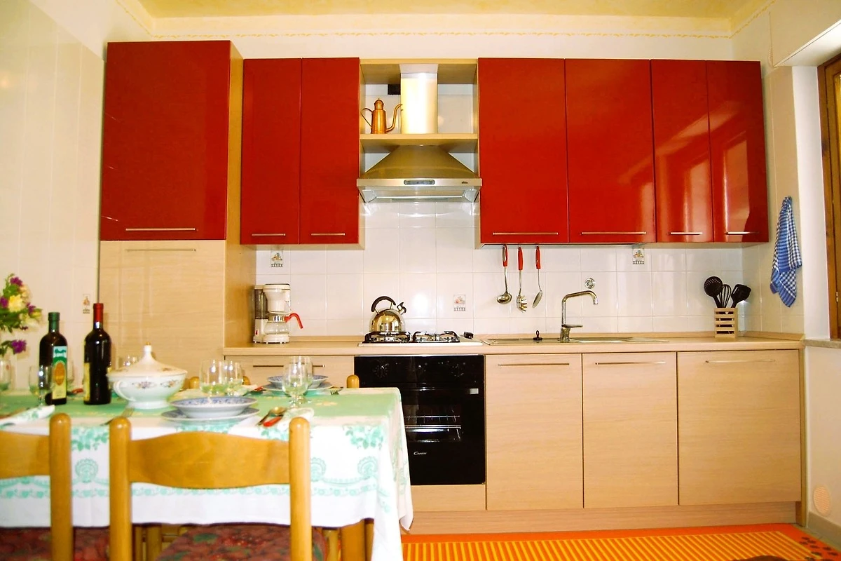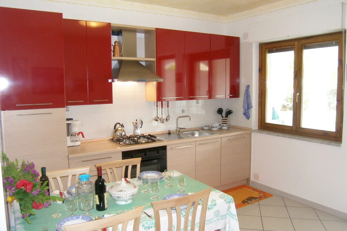 Each of the 2 bedrooms opens onto a small balcony. The double is designed in the Arte Povera style typical for southern Italy; the twin is furnished with an additional pull-out sofa sleeper for one person. The couch in the live-and-eat-in kitchen may also serve as a sleeping facility for one person.