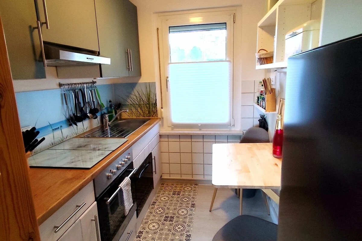 Nichtraucher, 2 bis 4 Personen, Hund erlaubt (45,00 Euro), Fliegenfenster, Rauchmelder, Grill und Sitzecke im Garten
