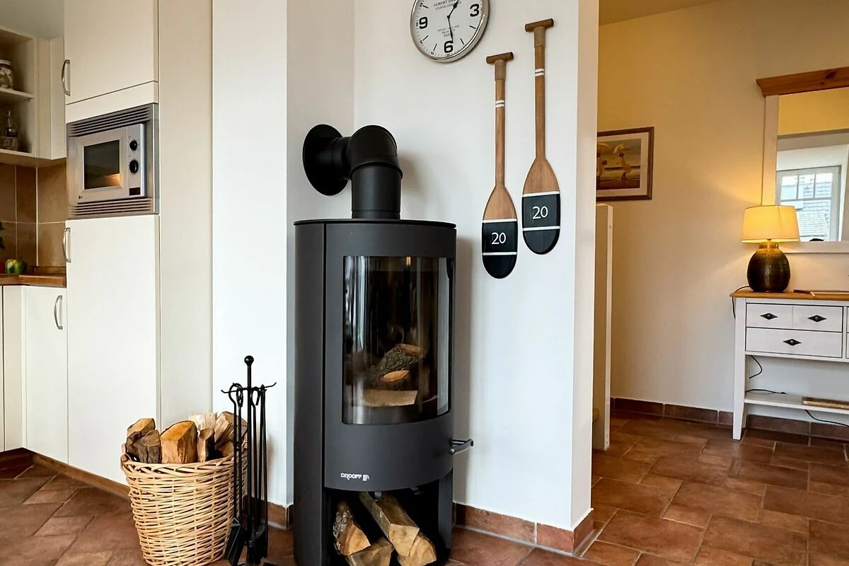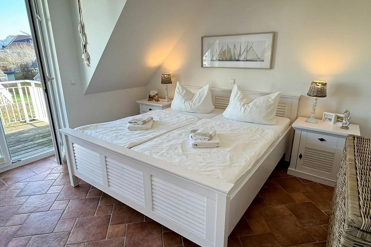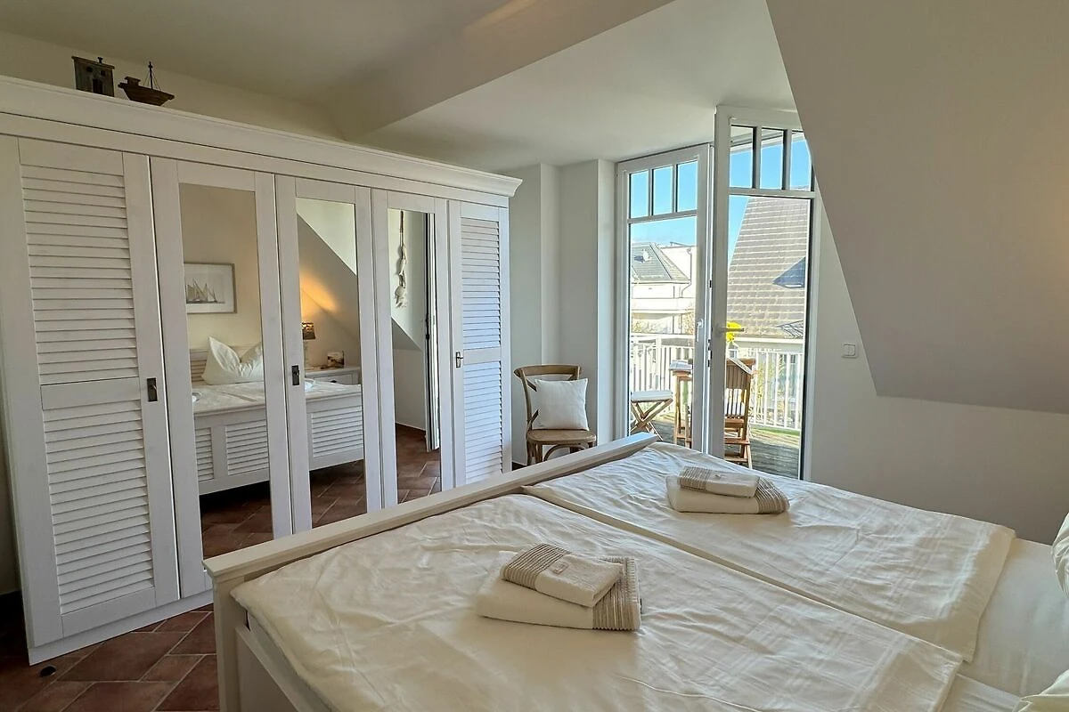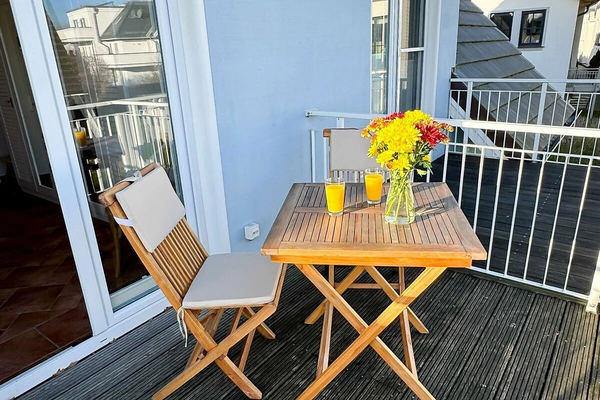 Die Wohnung verfügt über zwei Balkone mit Balkonmöbeln für vier Personen. Sie können hier die frische Meeresluft geniessen und entspannte Stunden im Freien verbringen. Die Einrichtung ist mit hochwertigen Naturholzmöbeln gestaltet, was eine warme und gemütliche Atmosphäre schafft. Eine Fussbodenheizung sorgt dafür, dass Sie auch in den kälteren Monaten stets angenehme Wärme haben. Der Wohnbereich ist mit einer gemütlichen Couch und einem HD-TV ausgestattet. Von hier aus haben Sie Zugang zu einem der Balkone.