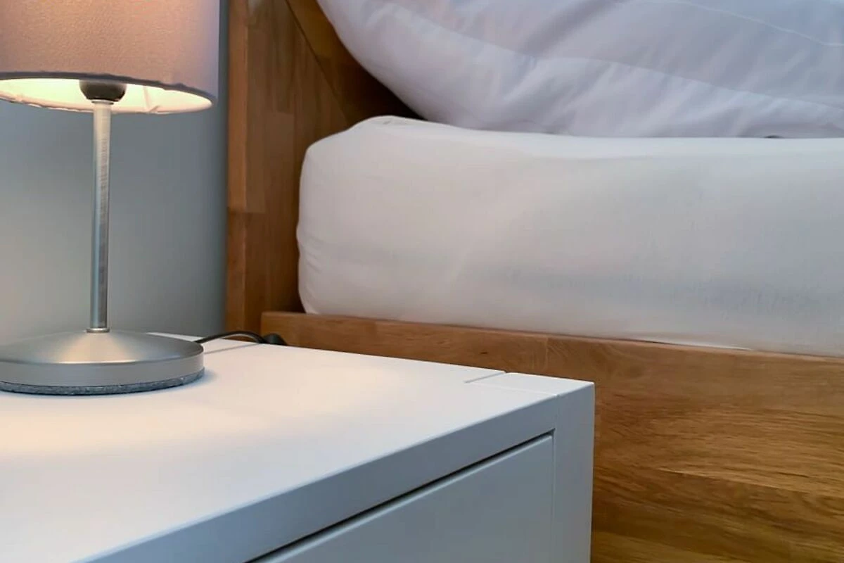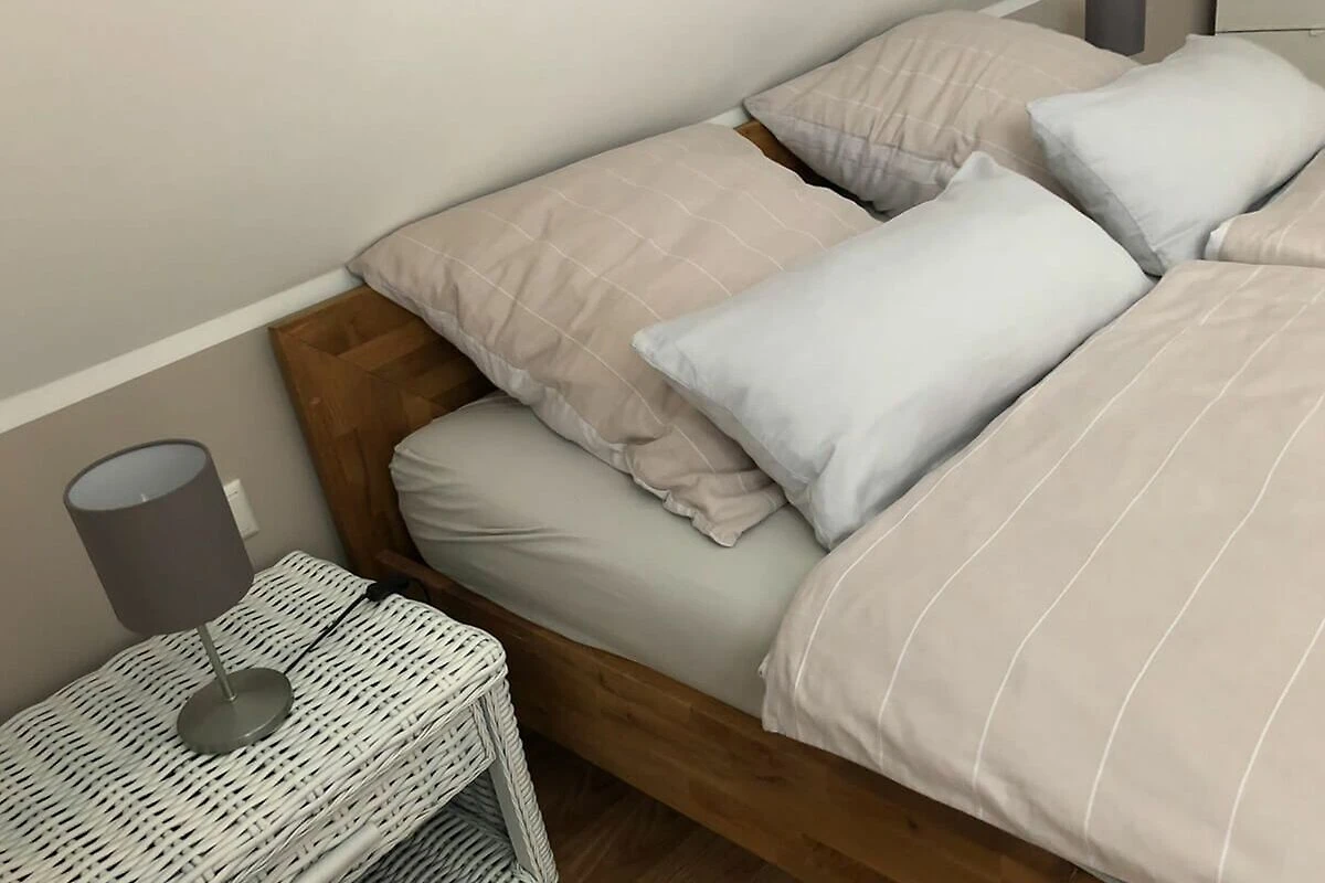Die beiden Schlafzimmer sind mit grosszügigen Doppelbetten (180x200 cm) ausgestattet, die für erholsame Nächte sorgen. Ein geräumiger Kleiderschrank bietet ausreichend Platz für Ihre Garderobe. Auch hier sorgen Fussbodenheizung und Fliegengitter für Komfort.