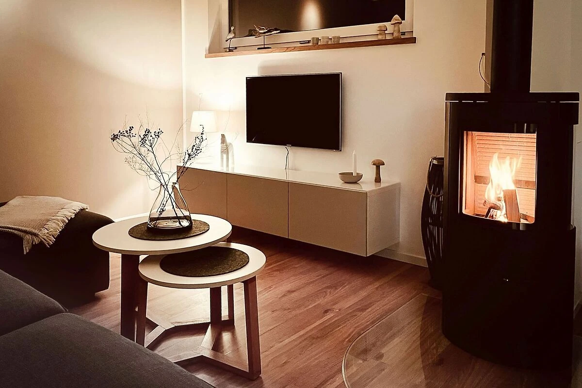 Das geräumige Wohnzimmer lädt mit einer Vielzahl von Annehmlichkeiten zum Entspannen ein. Hier finden Sie einen Fernseher mit SAT/Kabel-Anschluss für unterhaltsame Abende, begleitet von Musik über das Radio. Die wohlige Atmosphäre wird durch einen Kamin verstärkt, der nicht nur Wärme, sondern auch Behaglichkeit spendet. Die Fussbodenheizung sorgt für angenehme Temperaturen, während das komfortable Sofa den perfekten Ort zum Verweilen darstellt.