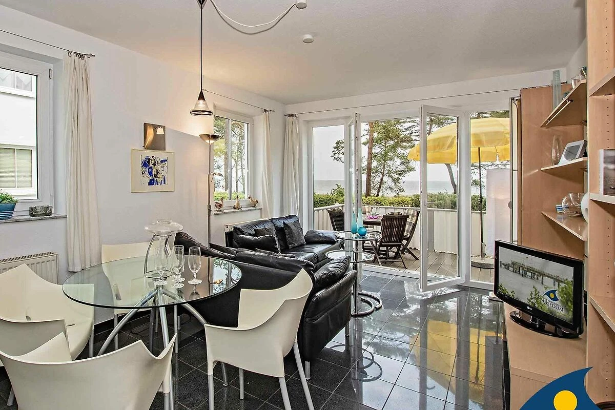 Das Haus ist ruhig, direkt an der Promenade und Strand gelegen. Idealer Ausgangspunkt um die Kaiserbäder sowie das wald- und binnenseereiche Hinterland zu erkunden. Gastronomie, Cafès und Einkaufsmöglichkeiten finden Sie fussläufig. Bis zur Seebrücke sind es nur ca. 15 Minuten.
