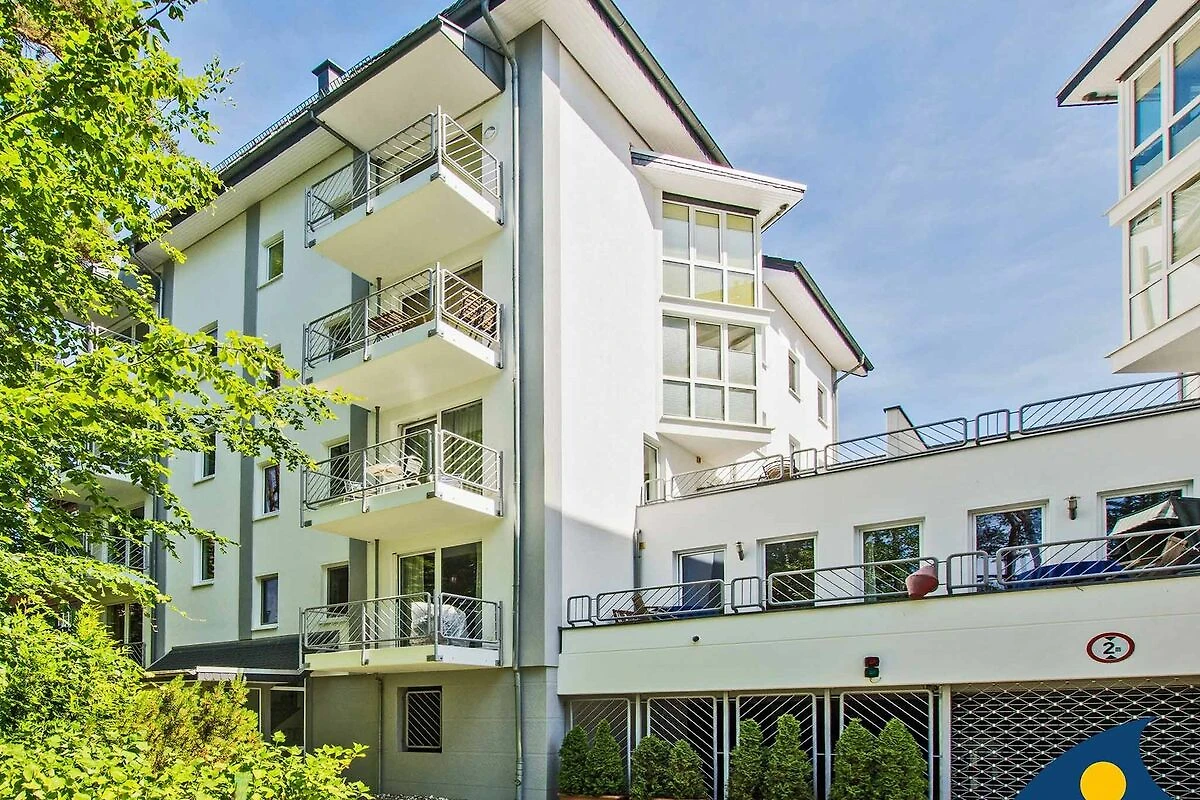 Dieses moderne 3- Raumappartement ist komfortabel eingerichtet und verfügt über ein zweites Schlafzimmer mit einem Einzelbett und einer Schlafcouch. Die Terrasse liegt direkt an der Promenade. Sie haben einen traumhaften Blick auf den Strand und die Ostsee. Zur Wohnung gehört ein Tiefgaragenstellplatz.