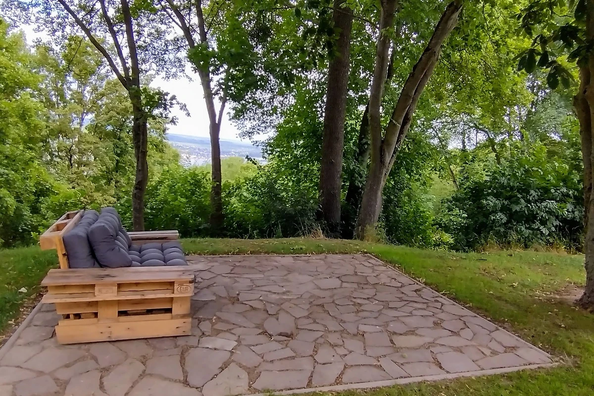 Wald, Wiesen und Weinberge umrahmen das Anwesen. Angrenzend befindet sich ein Naturbad.