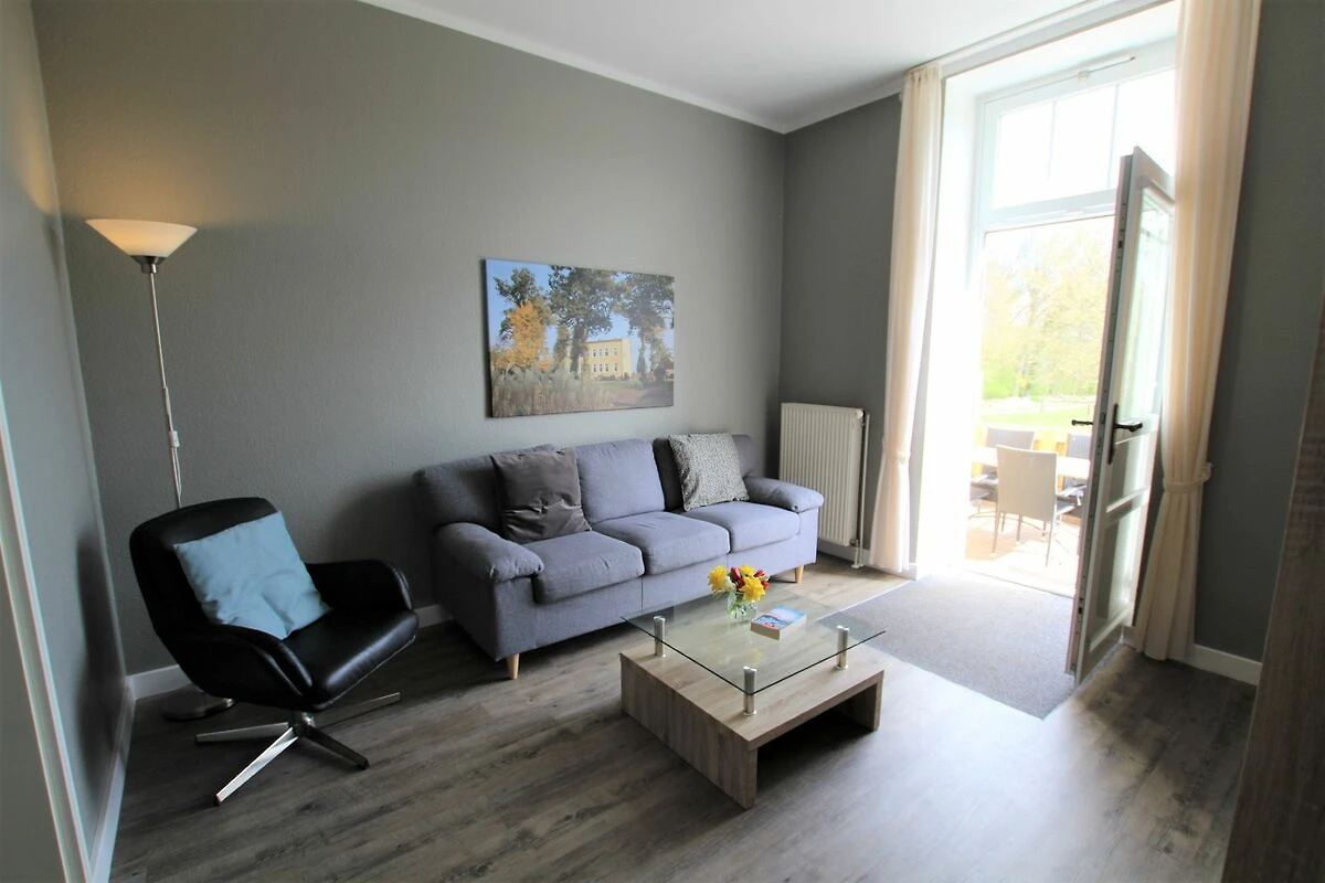 Die Wohnung U4 ist ca. 50 qm groß und befindet sich im Erdgeschoß des ehemaligen Gutshauses.