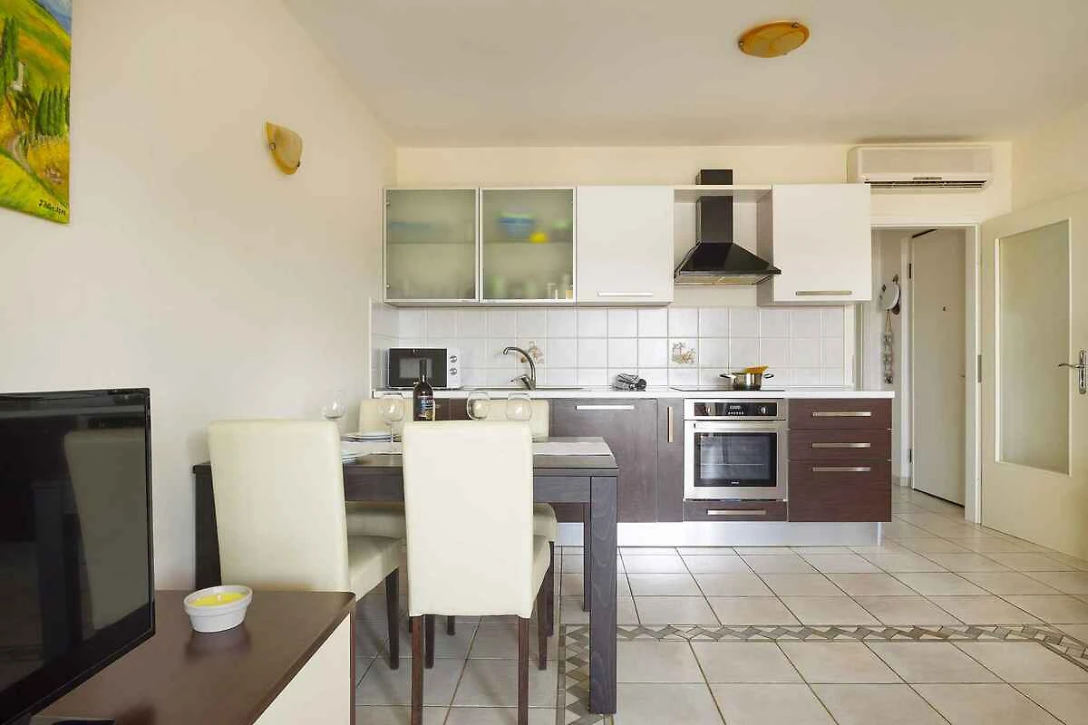 Soline. Die Ferienwohnung befindet sich auf einem offenen Gartengrundstück mit Blumen und Sträuchern. Der Vermieter wohnt nur zeitweise im Haus, nutzt jedoch einen separaten Eingang. Das Haus befindet sich im kleinen Ort Soline, 150 m vom Meer und dem berühmten Schlammstrand Soline entfernt. Die Apartments A2 bieten Platz für bis zu 4 Personen. Das Apartment verfügt über eine Küche und ein Wohnzimmer, ein Schlafzimmer, ein Badezimmer und einen Balkon (10 m²). Internet und Klimaanlage sind im Preis inbegriffen und Parkplätze befinden sich im Innenhof. Die Zufahrt erfolgt direkt von der Hauptstrasse (asphaltiert). Parkplatz auf dem Grundstück. Parkplätze befinden sich im Hof.