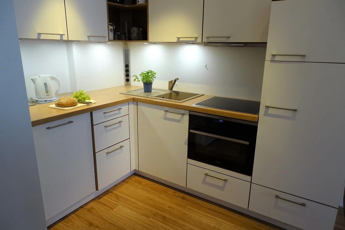 Die Wohnung ist sehr liebevoll ausgestattet, was sich auch in einigen Details zur Begrüßung zeigt ( Gummibärchen, Spültücher gefaltet usw.). Beide Schlazimmer haben eien Größe, in der man sich auch noch gut bewegen kann. Die Matratzen waren für uns ein bisschen zu weich. Die technische Ausstattung ist sehr hochwertig.
