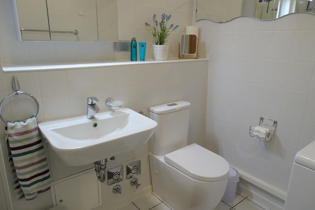 Gute Lage, hochwertige Ausstattung. Ausnahme; die Kleiderschränke haben keine Fächer, nur Stangen. Besonders toll: Rolladen an allen Fenstern sorgen für ruhigen Schlaf.