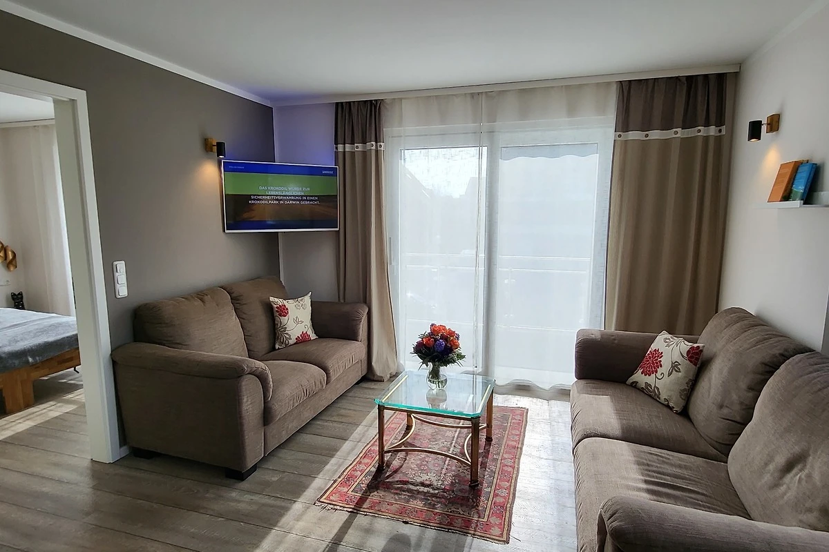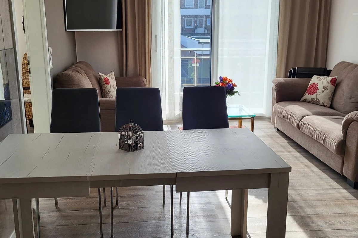 Ihre Ferienwohnung befindet sich in einem modernen Neubau im 1. Stock mitten im Zentrum von Grömitz mit bodenlangen Fenstern. Dadurch sind die Wohnungen sehr hell, sodass man das Gefühl hat, in einem Wintergarten zu wohnen.