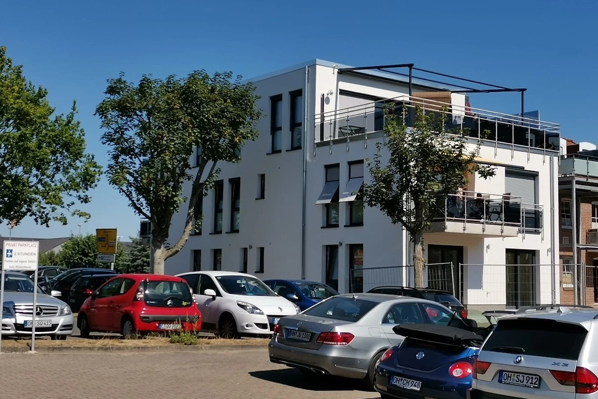 Von der Lage her geht es kaum besser. Die Supermärkte Aldi und Rewe sind direkt gegenüber, Fussgängerzone und Kurpark sind nur 100 m entfernt, genauso wie Bushaltestelle, Arztpraxis und Kirche. Zum Strandzentrum sind es ca. 8 Gehminuten.